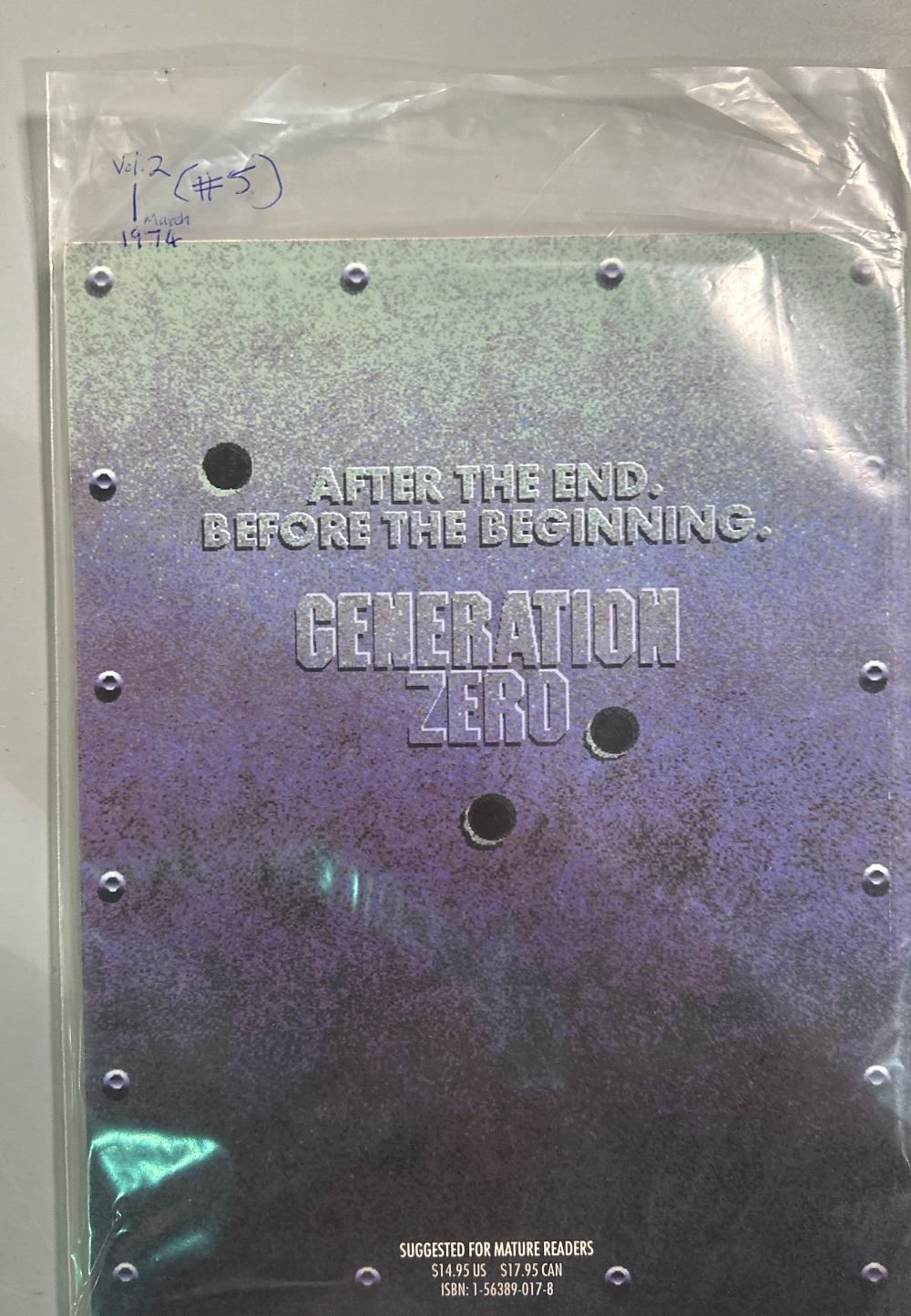 Generation Zero is a full-color, softcover graphic novel written by Archie Goodwin with art by Pepe Moreno. Published by DC Comics, this post-apocalyptic story is suggested for mature readers. SKU: IC-20260223-130-73-J-260223-41