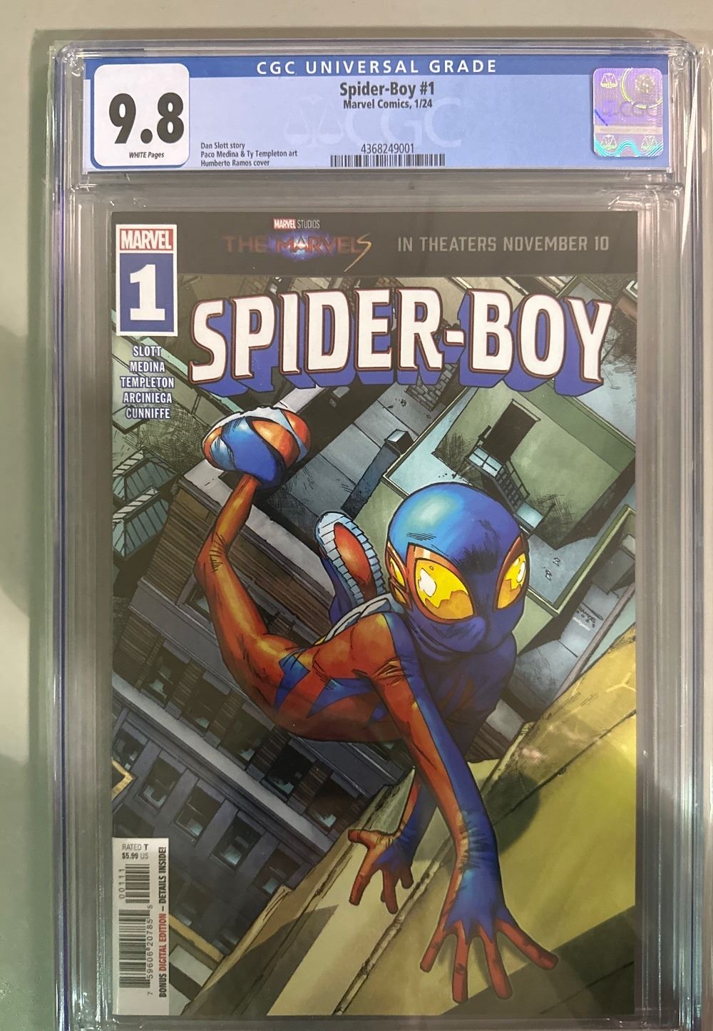 Spider-Boy #1 (1/24) Comics is professionally graded by CGC with a Near Mint/Mint score of 9.8 and have white pages. SKU: IC-20260224-245-74-J-260226-99