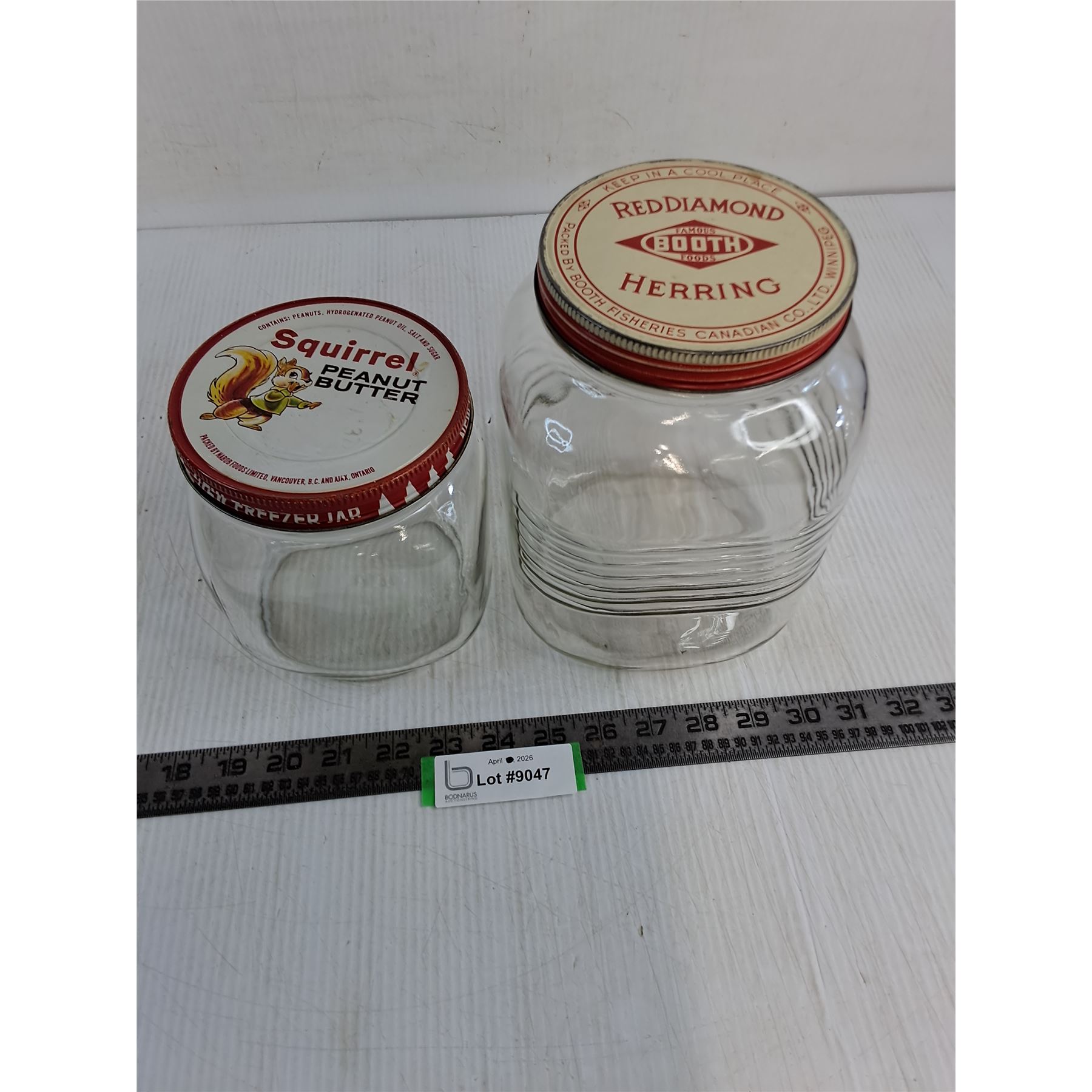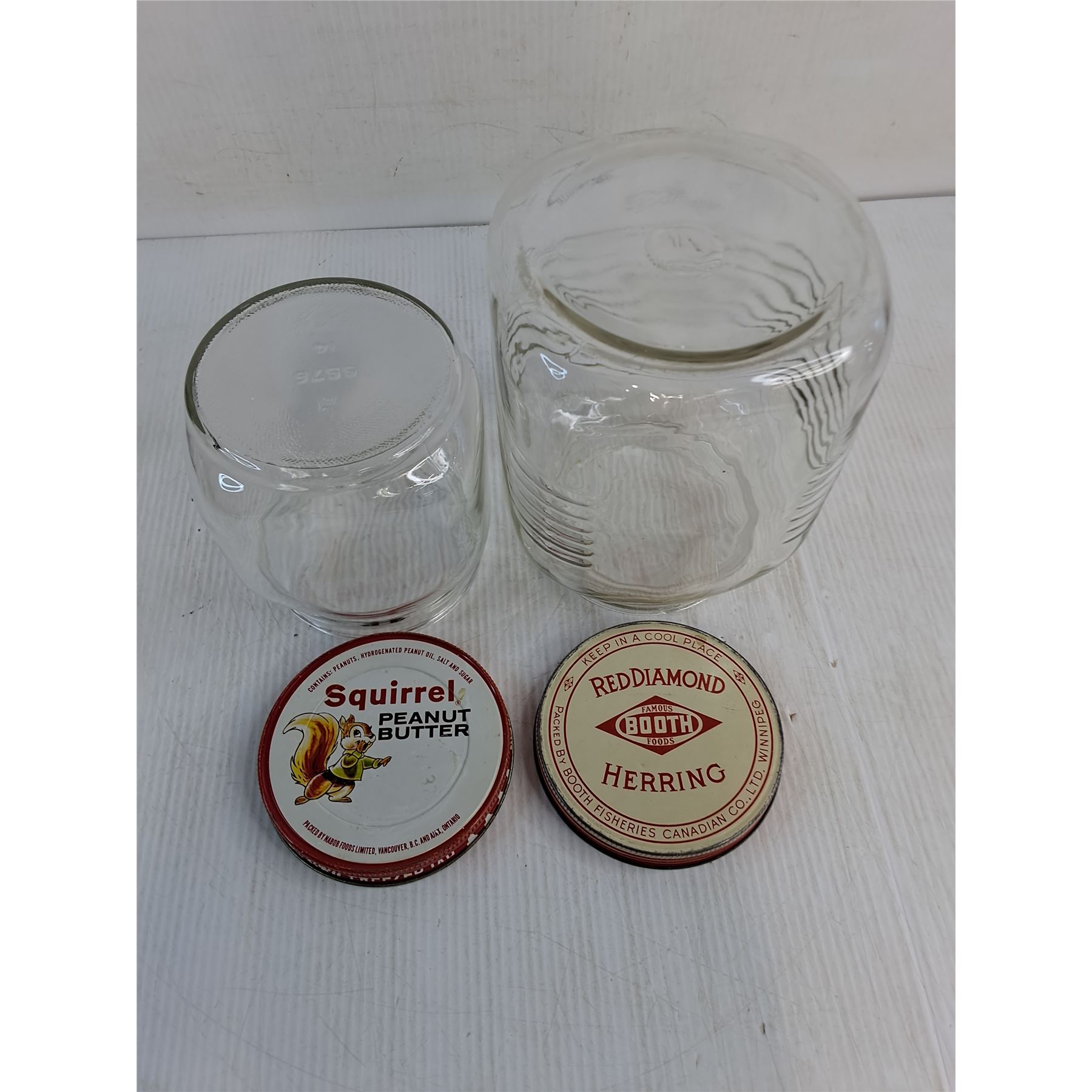 Lot 9047 (2) Vintage Glass Containers (Squirrel Peanut Butter & Red Diamond Herring)