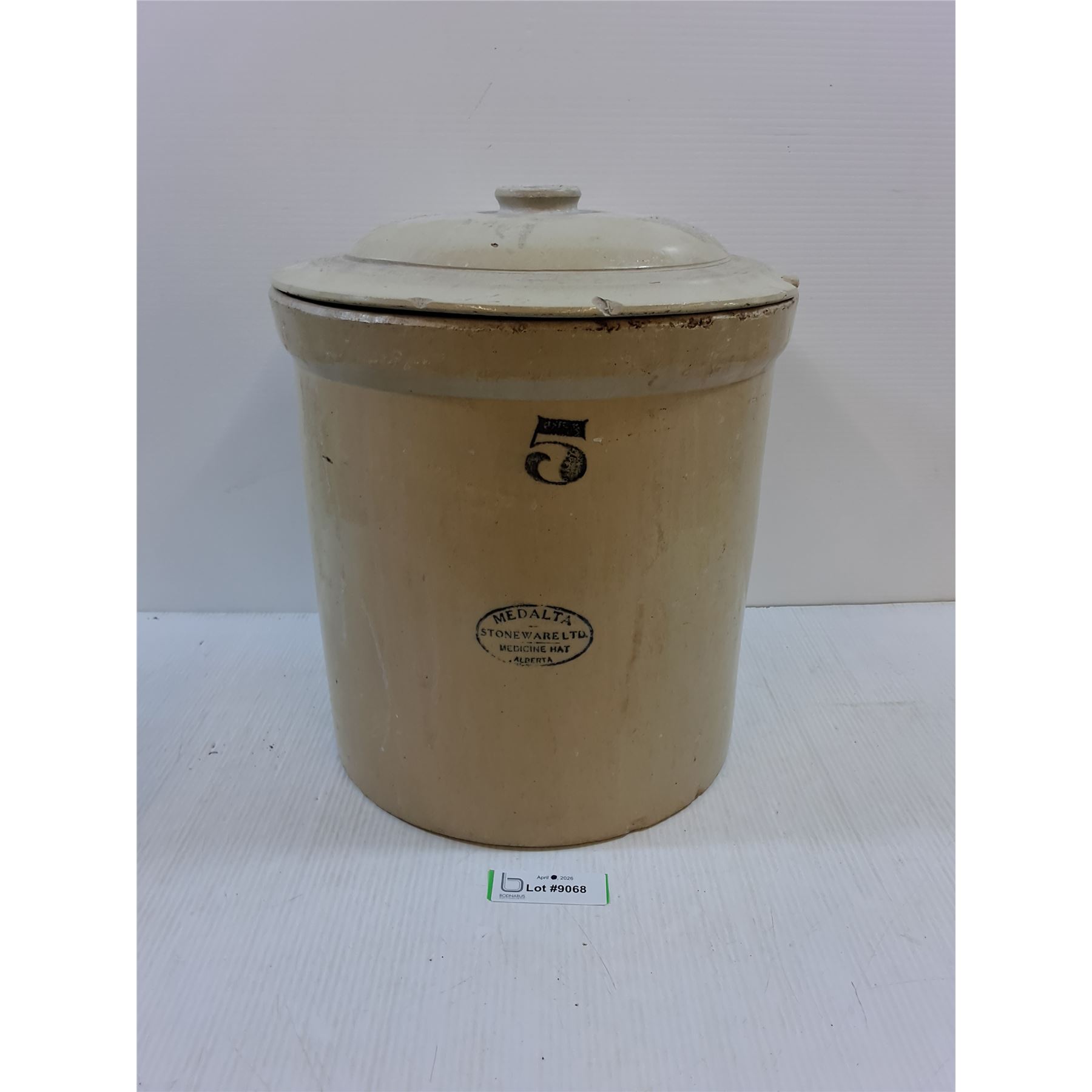 Lot 9068 Medalta #5 Crock with Lid-No cracks, some chips as shown in pictures