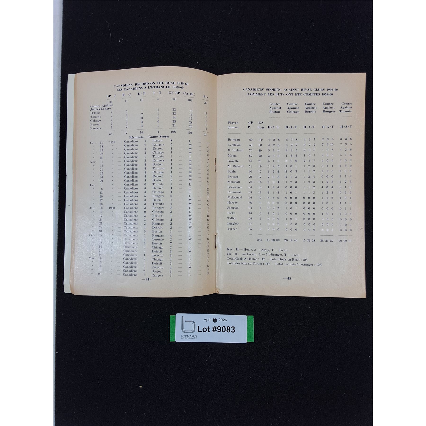 Lot 9083 1960 Montreal Canadiens Yearbook NHL