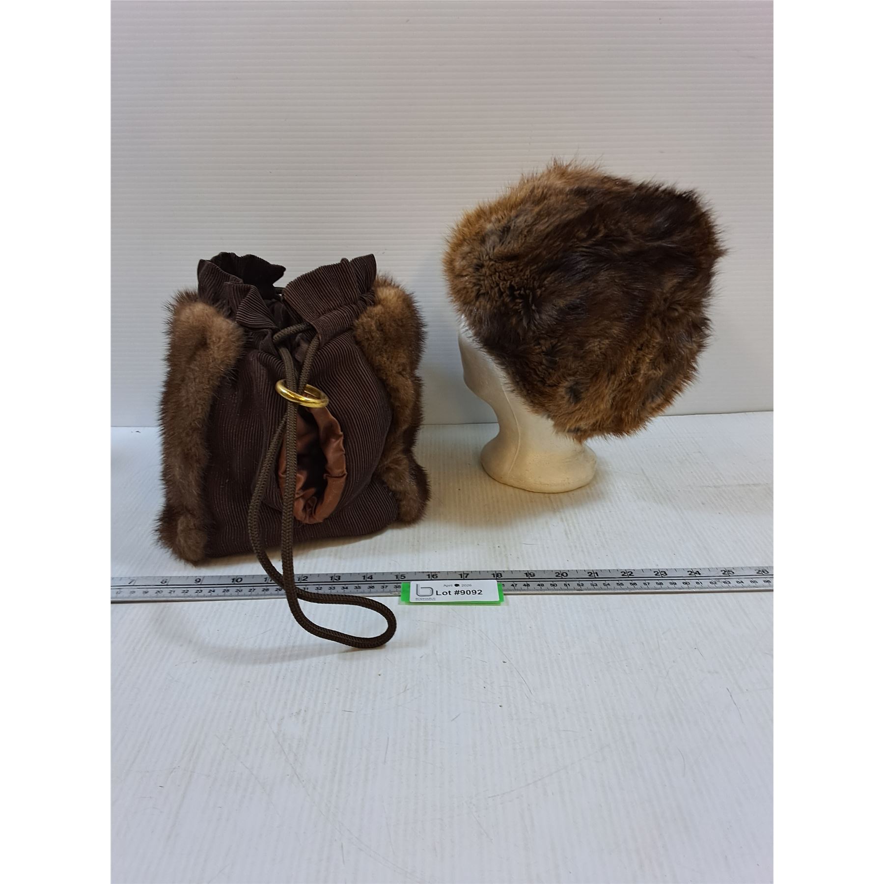 Lot 9092 Beaver Fur Purse with Hand Warmer Tunnel and Fur Hat