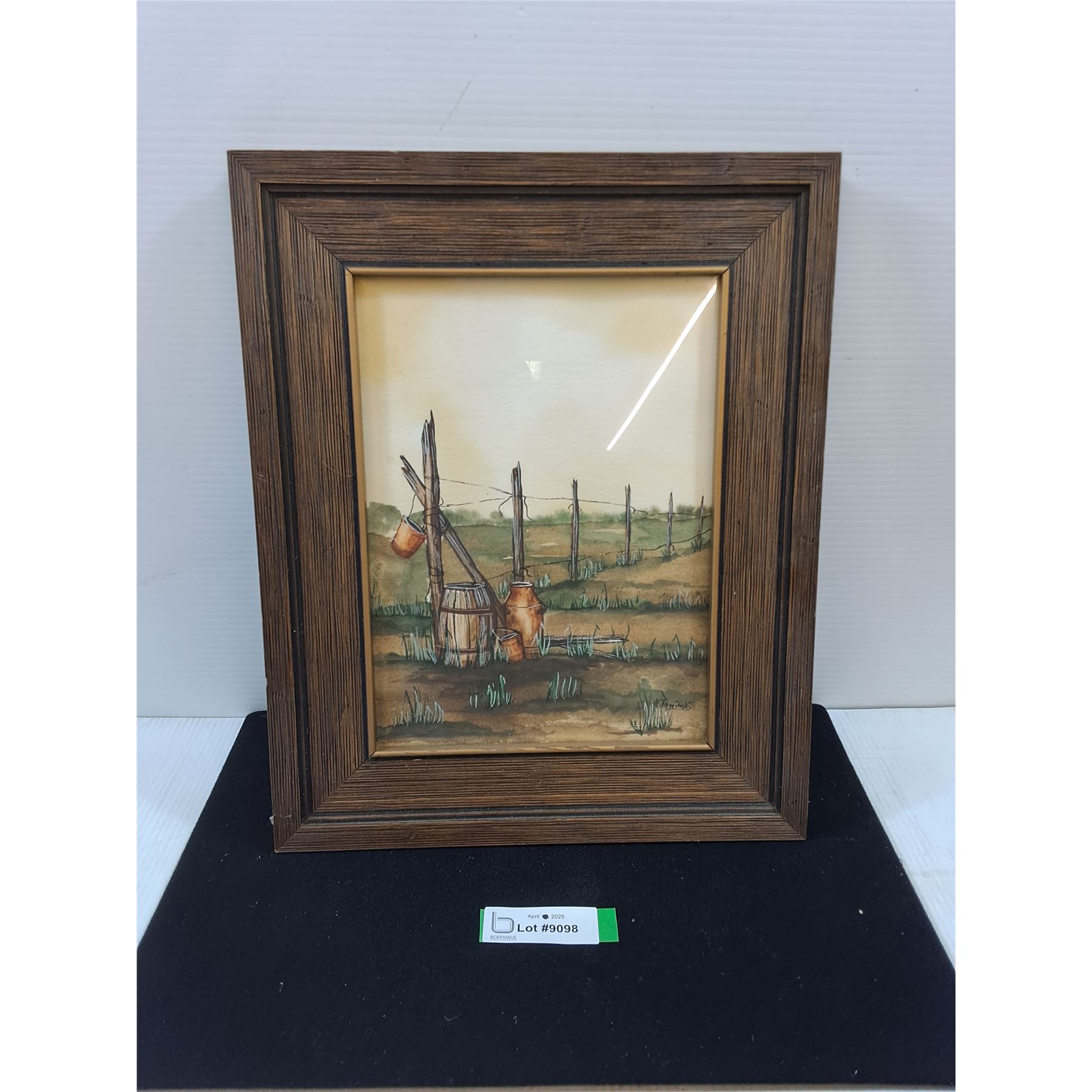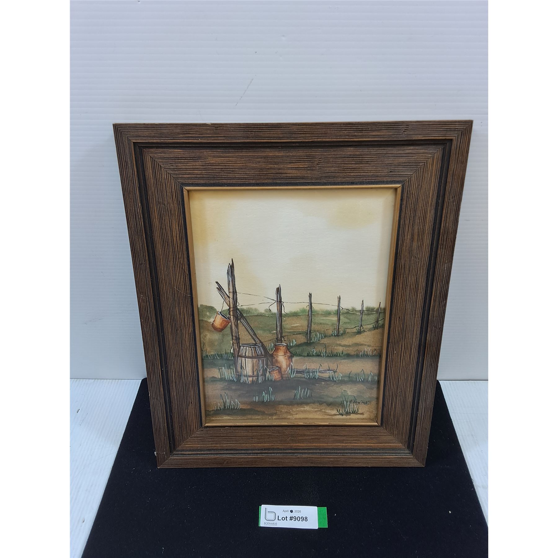 Lot 9098 H Slawinski Watercolor in Wood Frame-13.5"x16.5" outer frame measurement