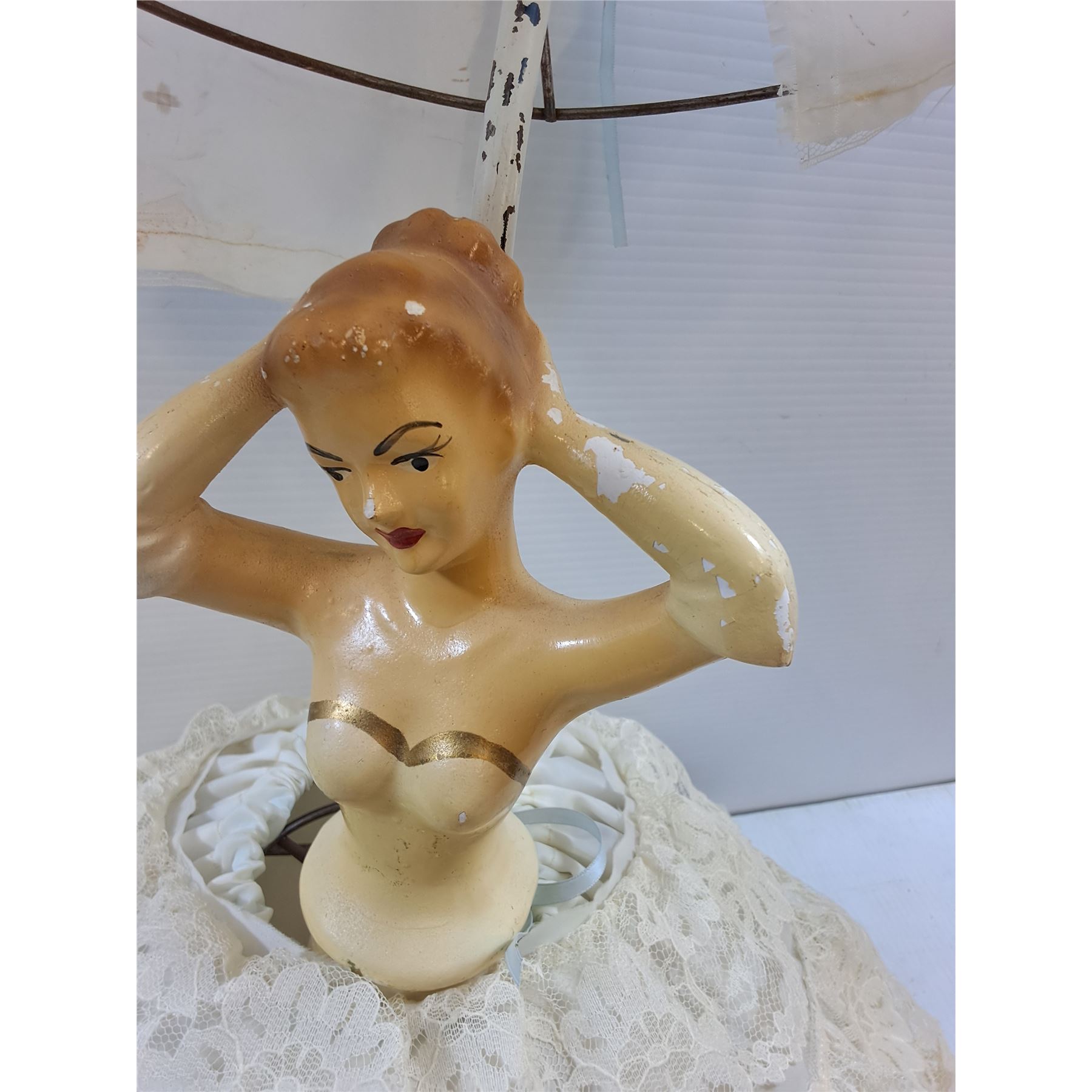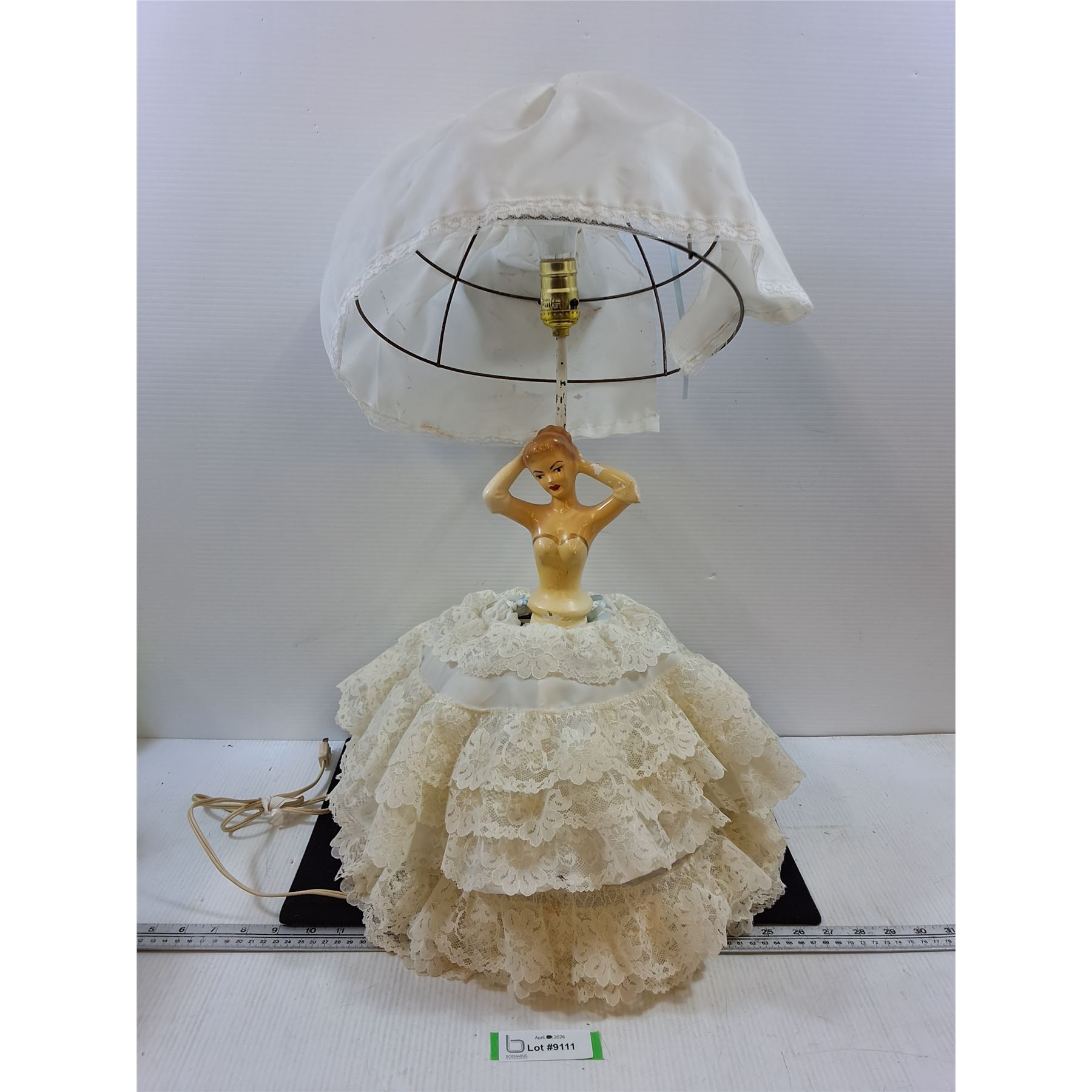 Lot 9111 Plaster Doll Lamp with Hoop Dress and Shade- PICK UP ONLY