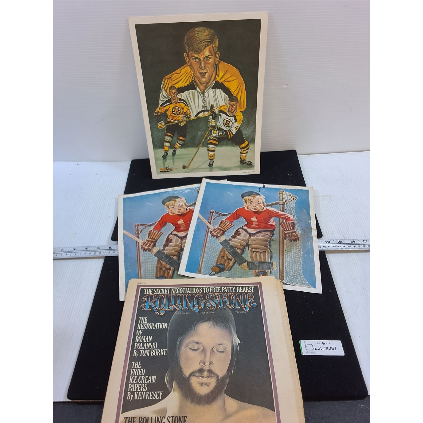 Lot 9267 Rolling Stone Paper, (3) Hockey Themed Pictures-one of Bobby Orr
