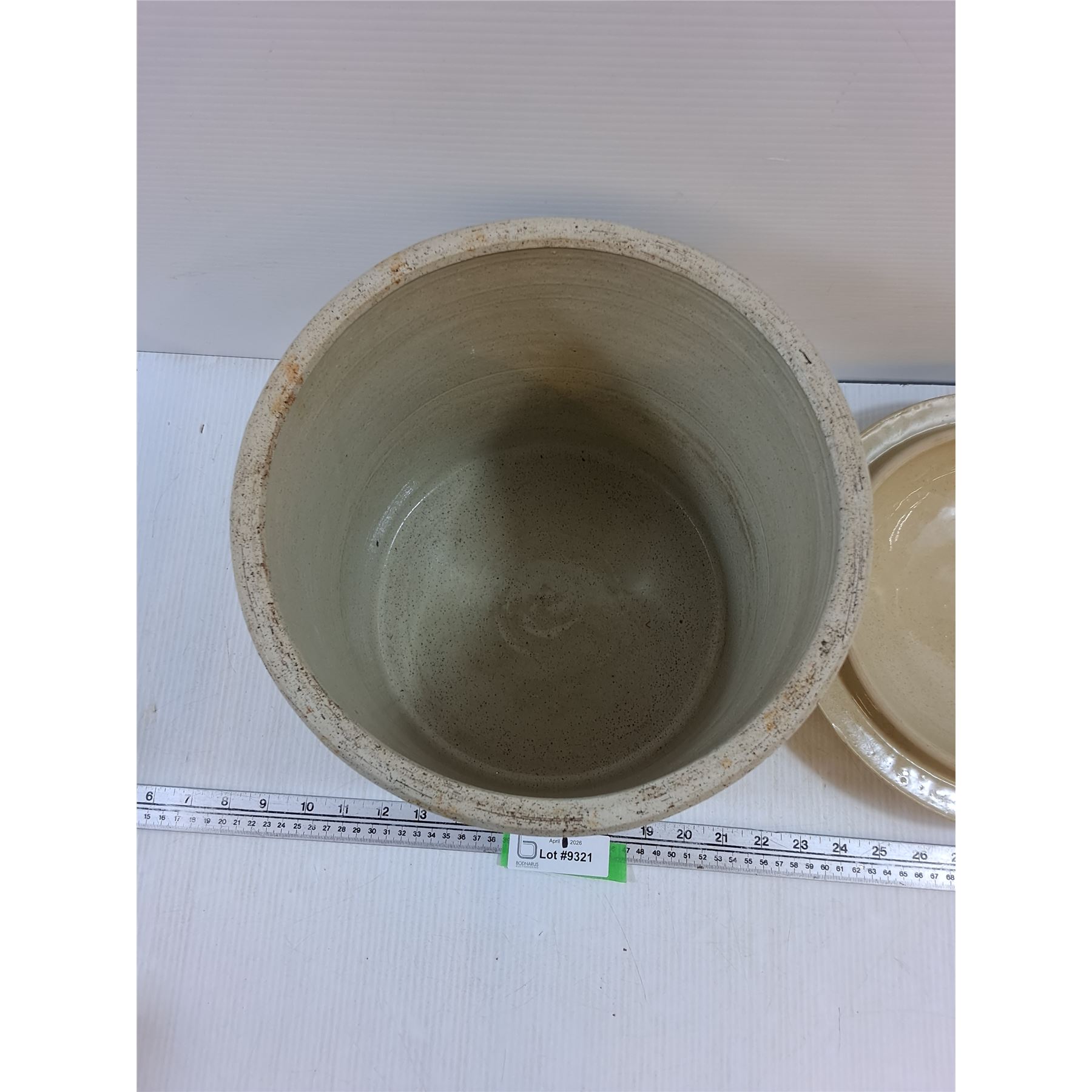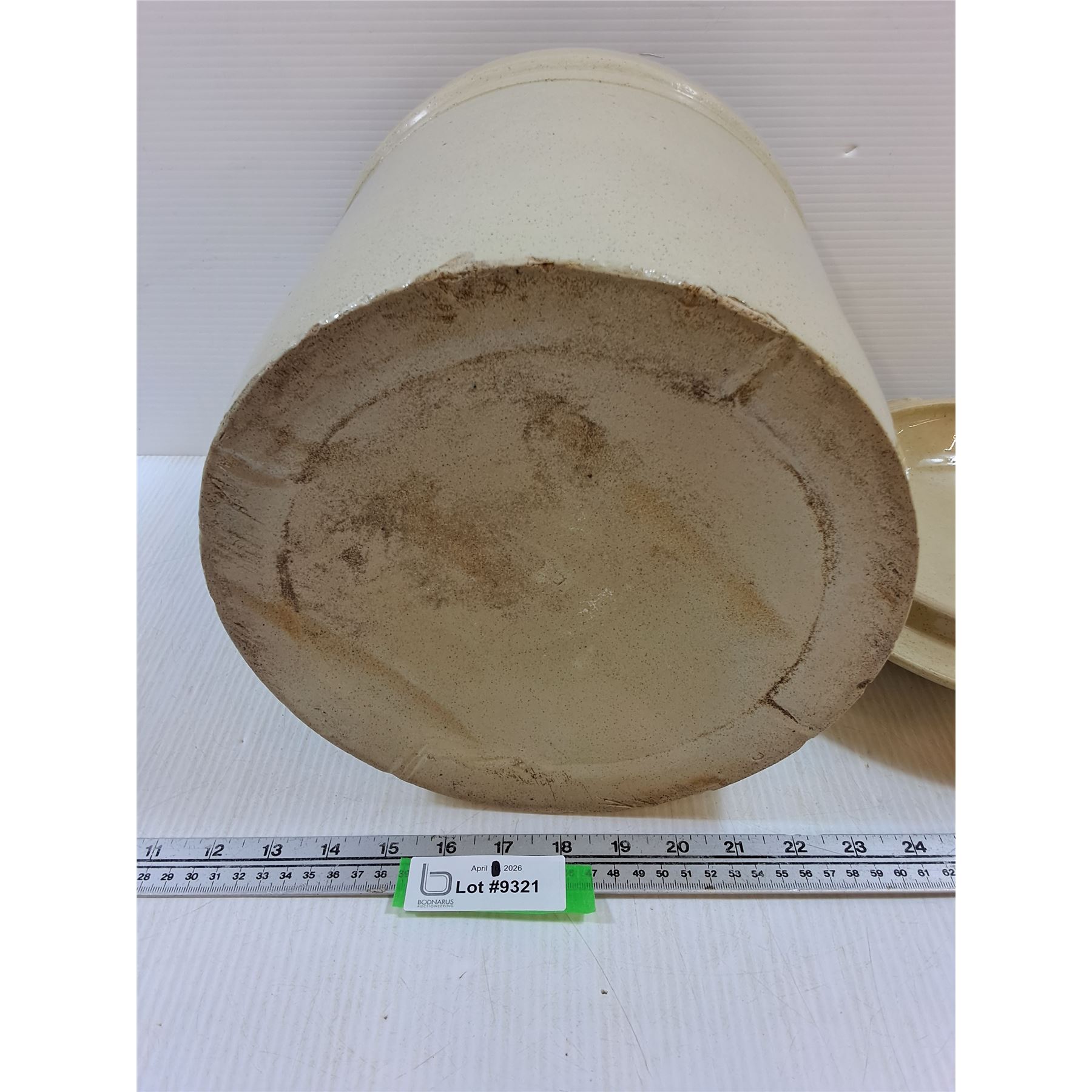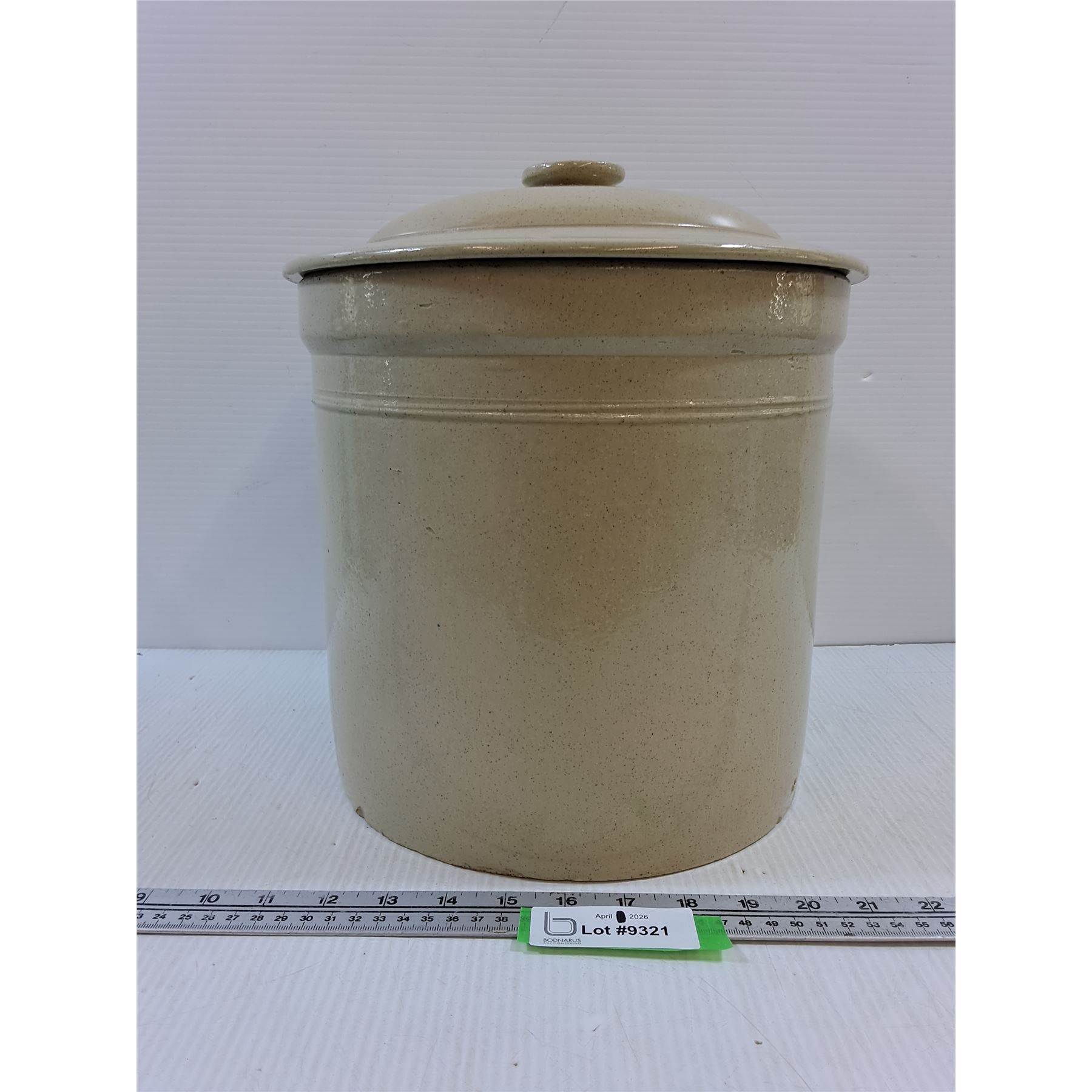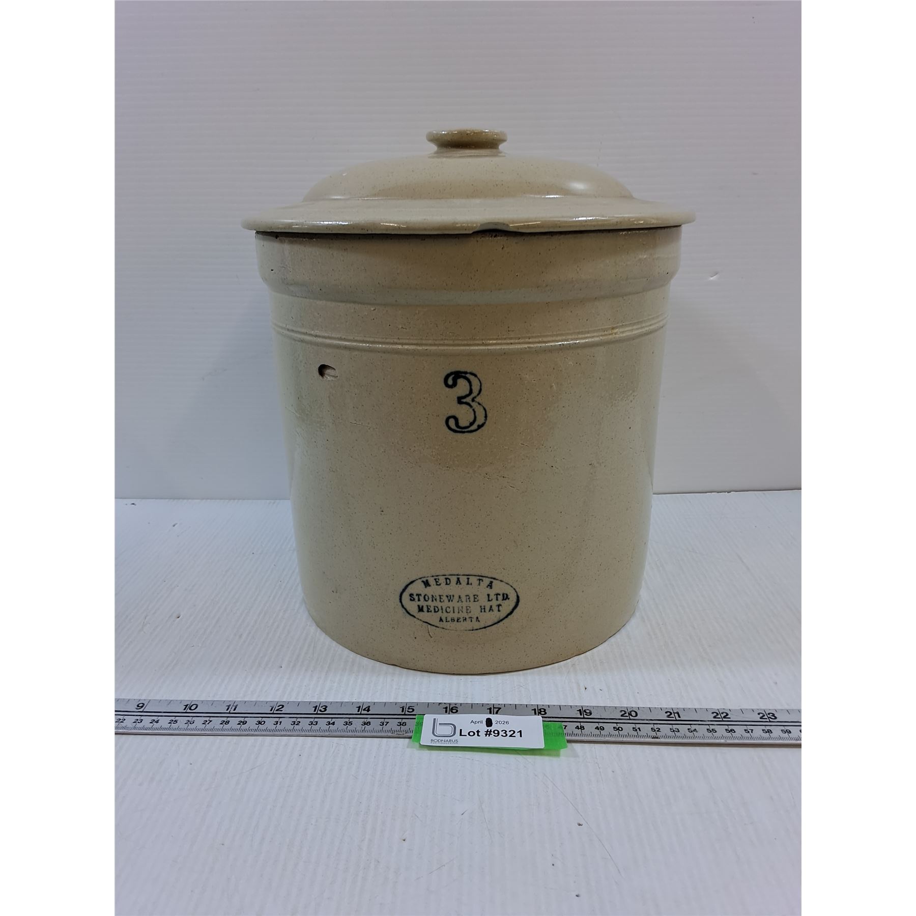 Lot 9321 Medalta #3 Crock with Lid-no cracks, chip on base of crock and inner rim of lid