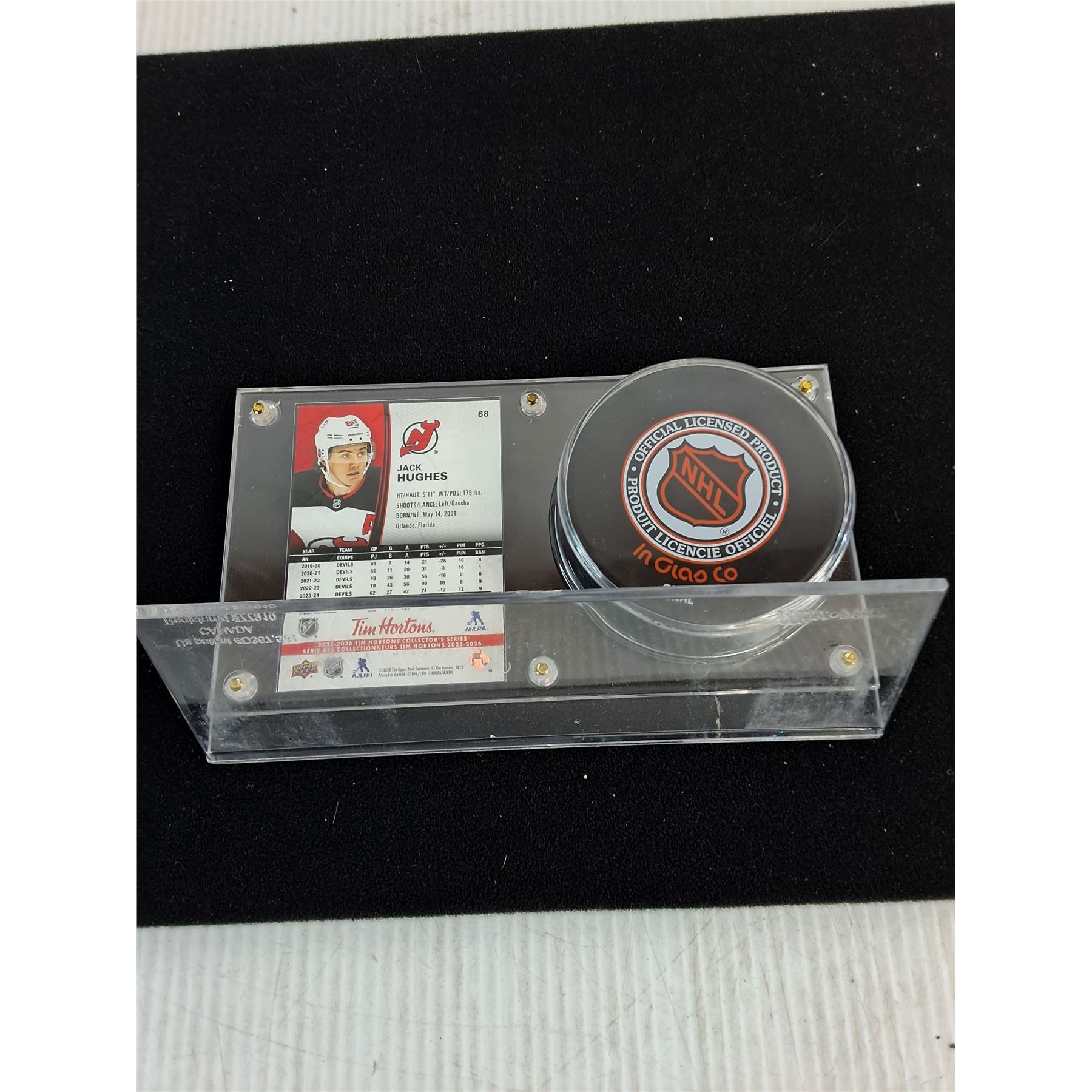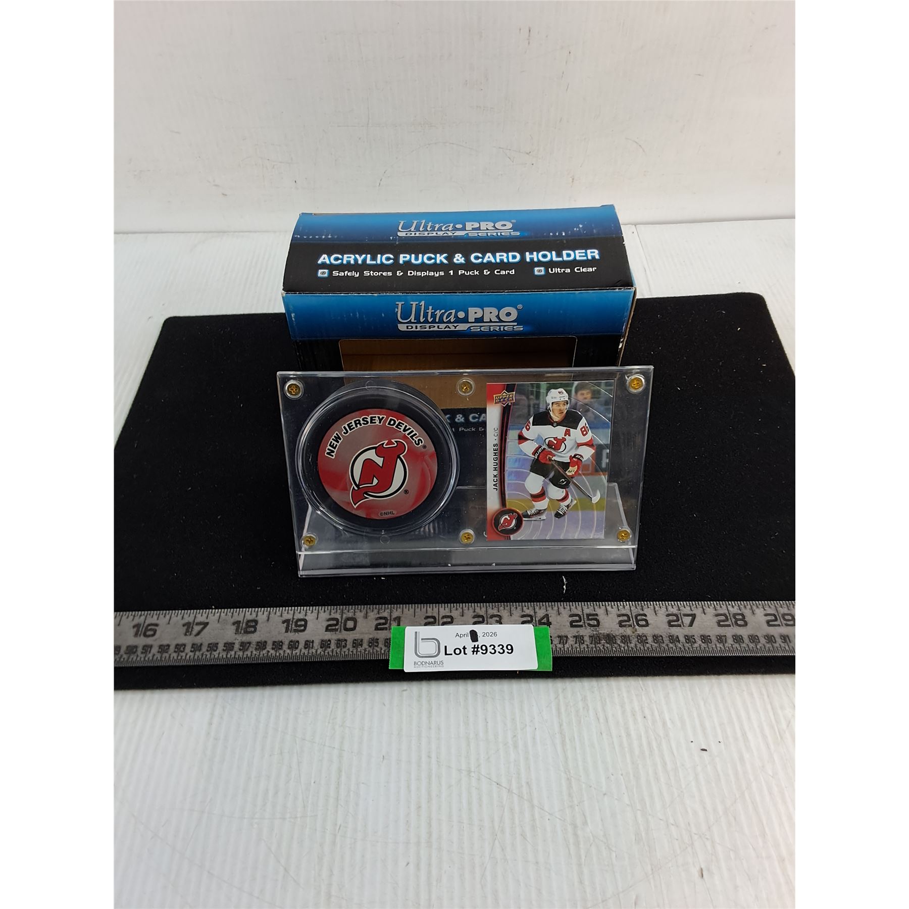 Lot 9339 Ultra-Pro Puck & Card Holder w/Jack Hughes Card & Devils Puck - Unauthenticated