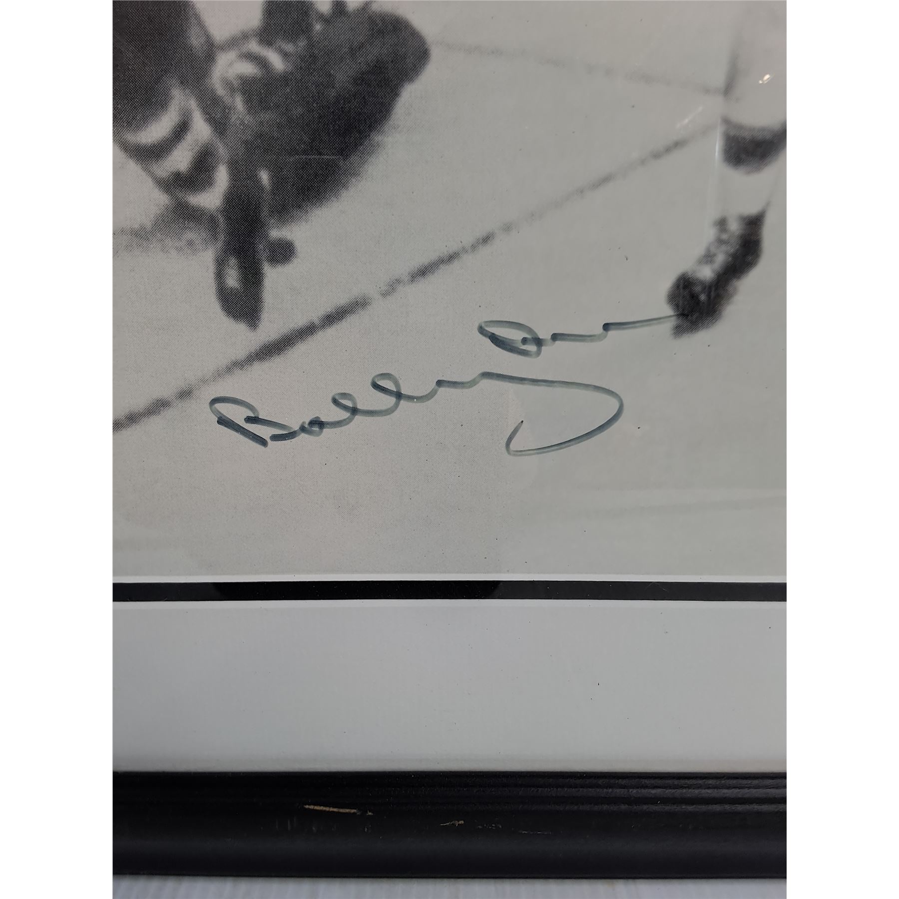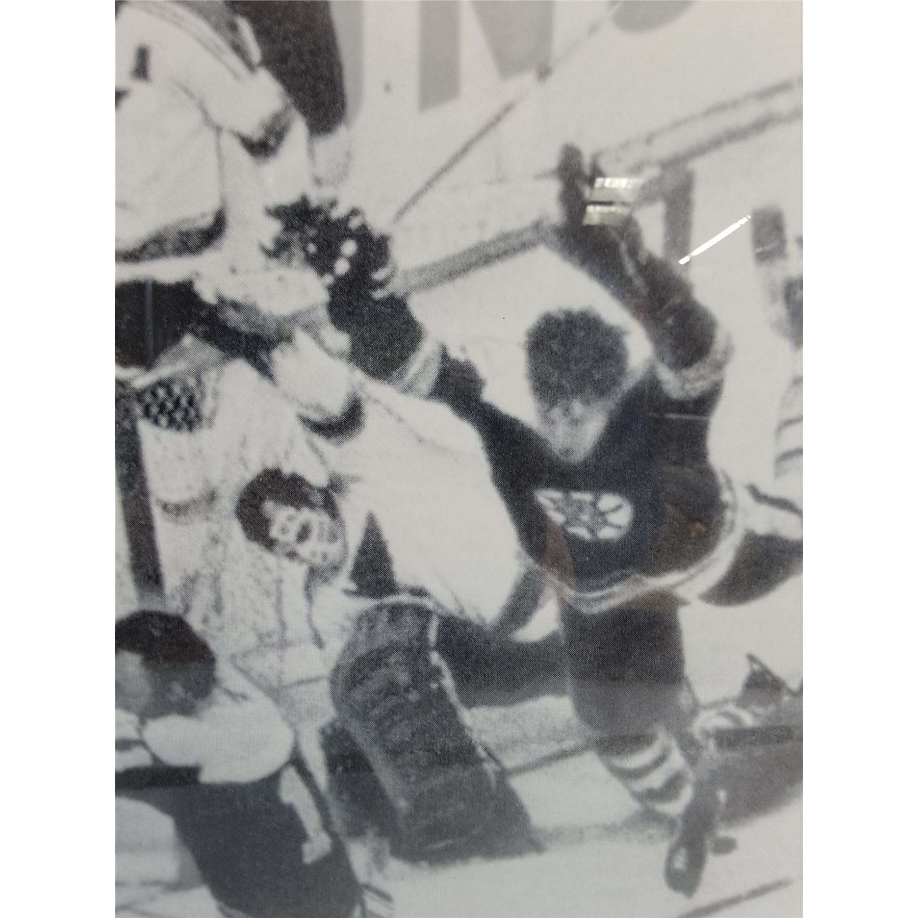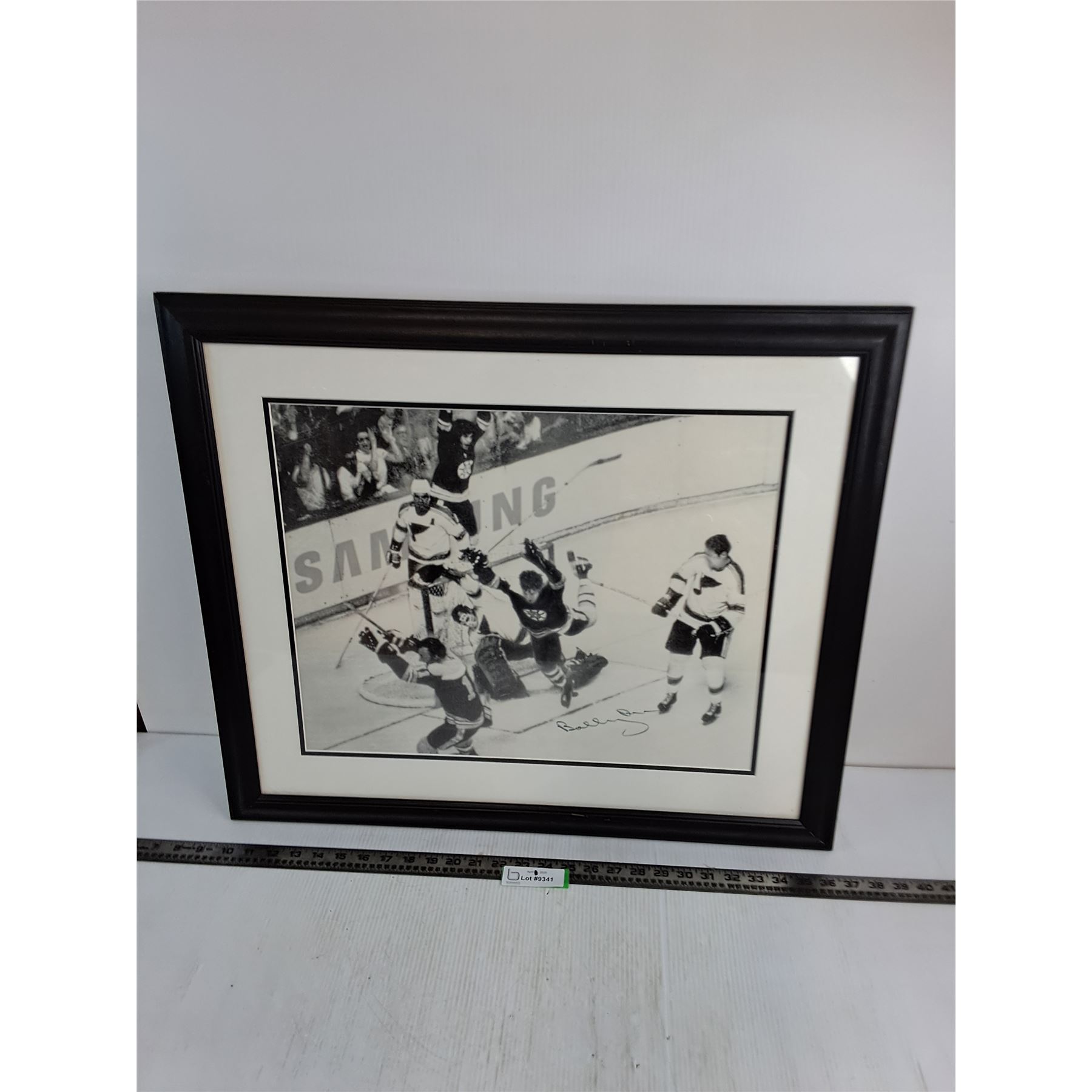 Lot 9341 Framed Autographed 27" x 23" Picture of Bobby Orr's Iconic 1970 Cup Clinching Goal - Unauthenticated
