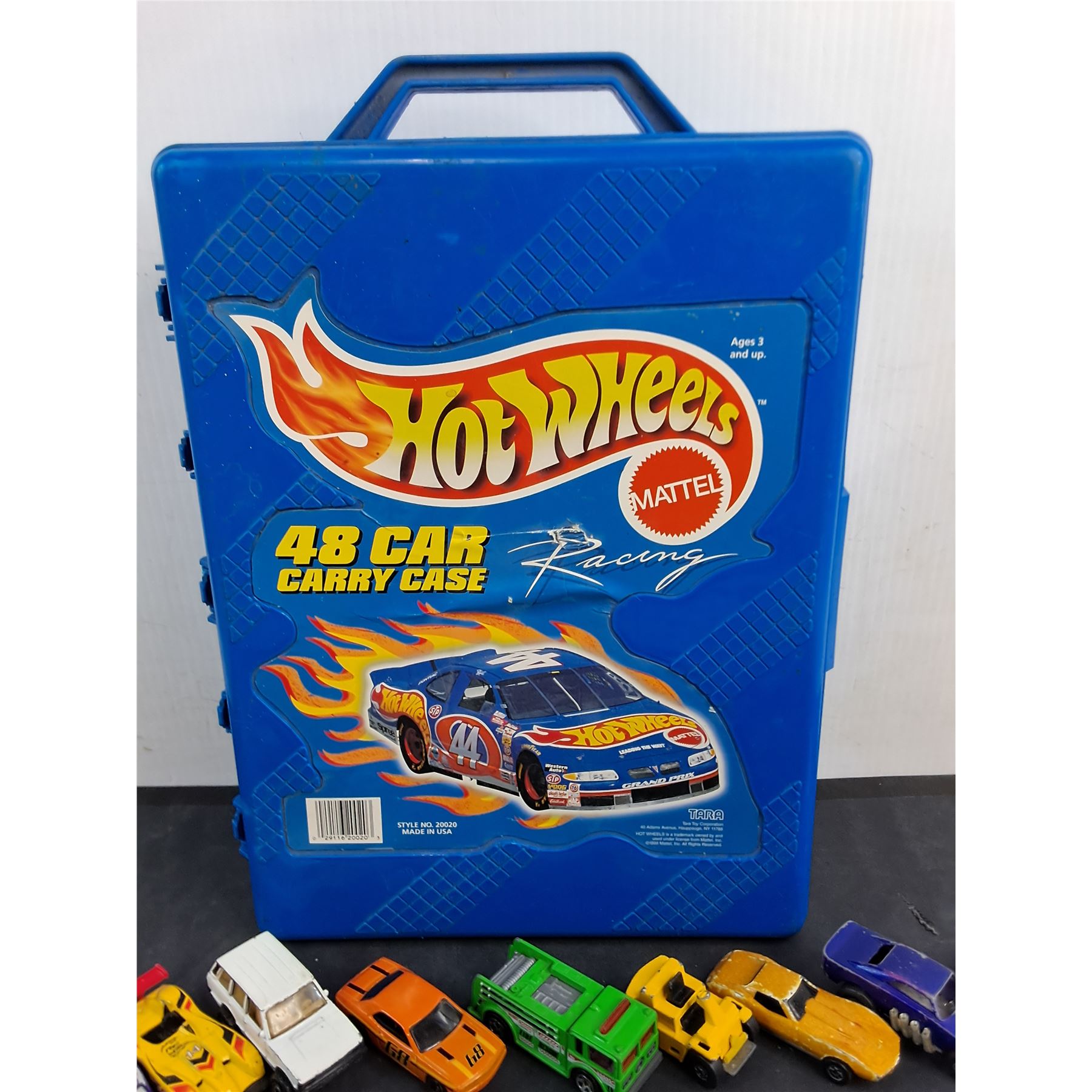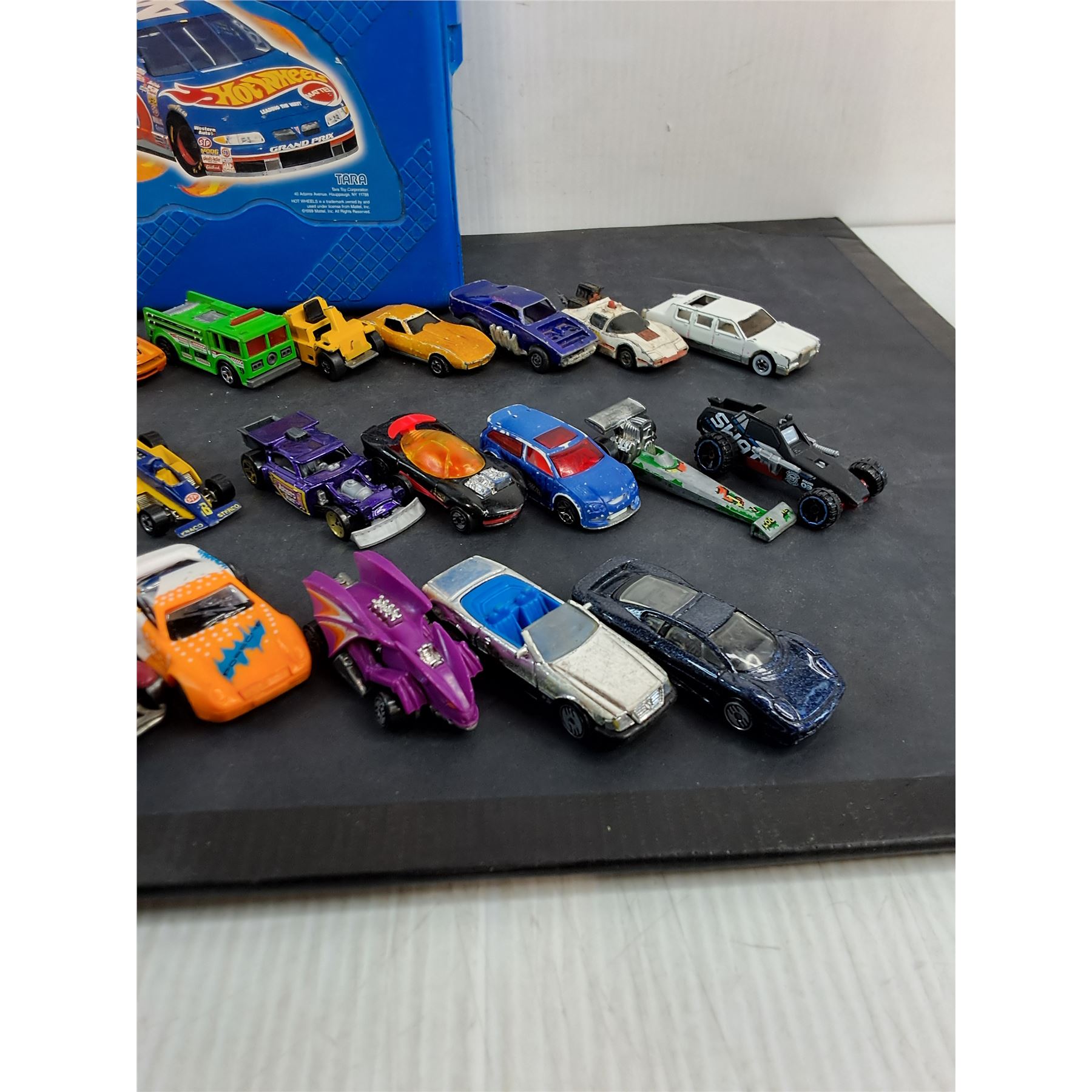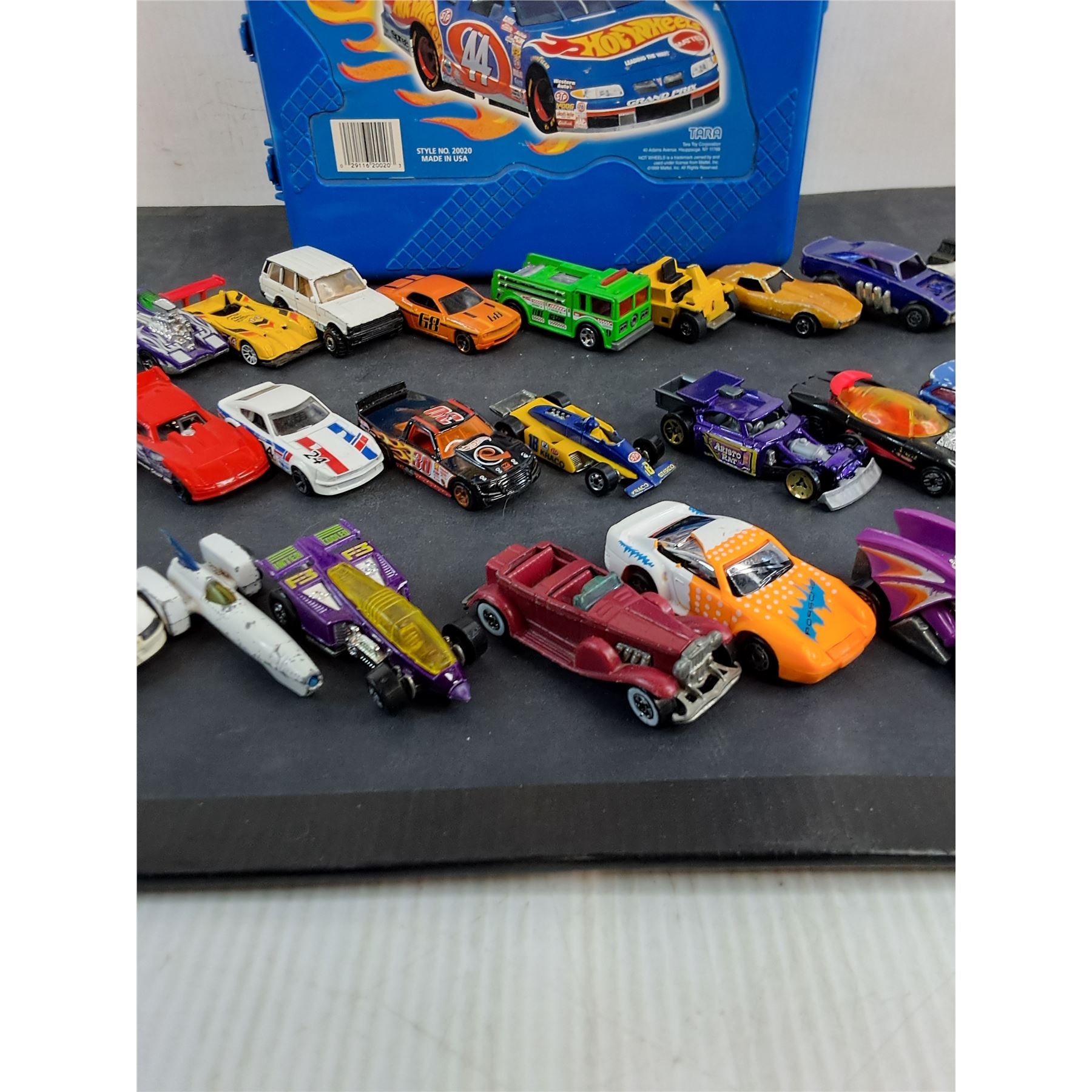 Lot 9363 (29) Assorted Dinky Cars w/Hot Wheels Storage Tote - Some Cars Damaged