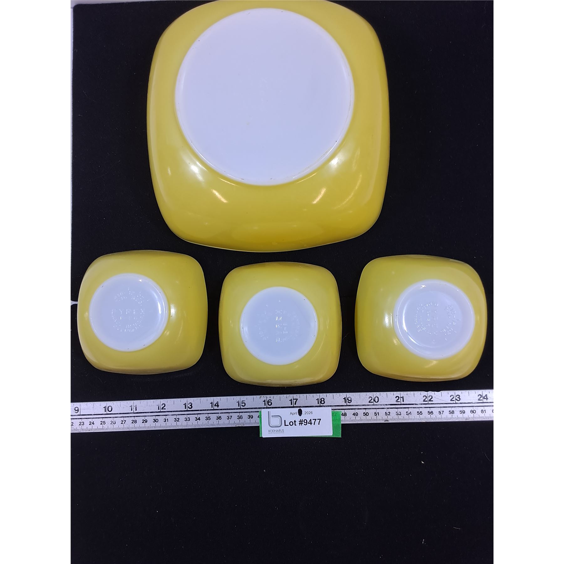 Lot 9477 Yellow Square Pyrex Salad/Berry Bowl Set