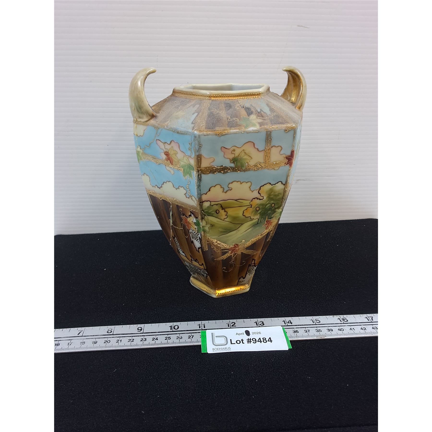 Lot 9484 Noritake Dutch Themed Vase-8" tall-has been repaired