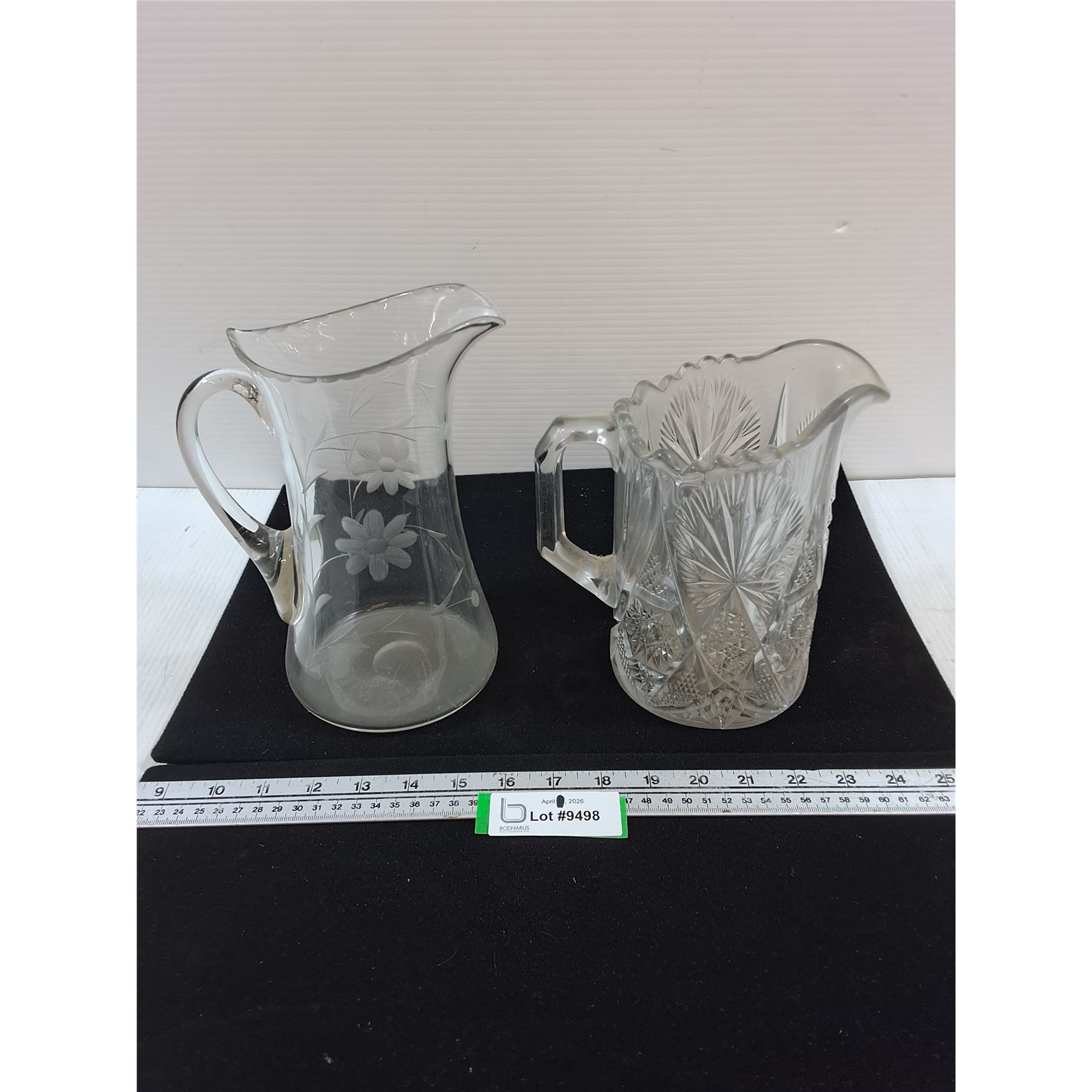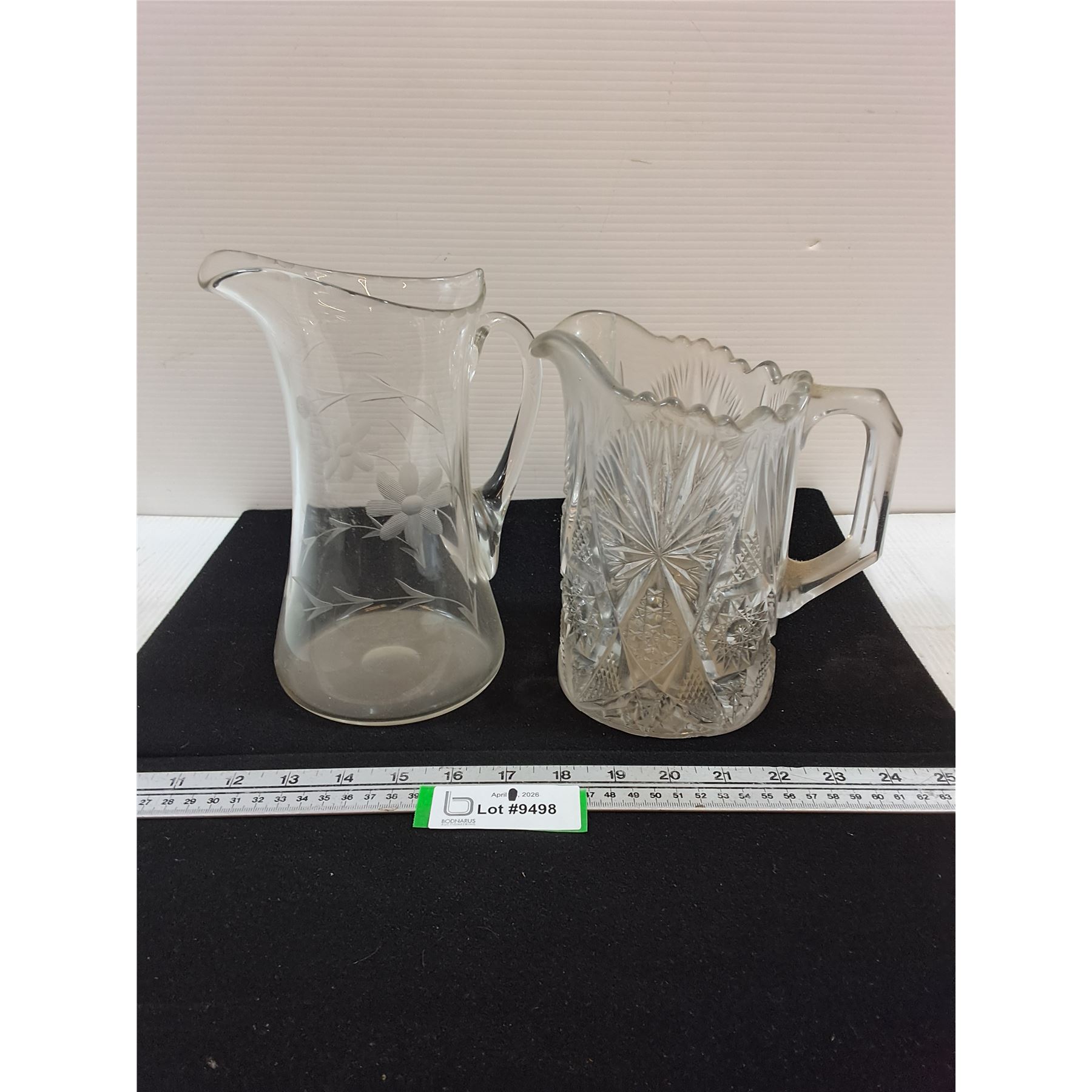 Lot 9498 (2) Glass Pitchers-1 Etched, 1 Pressed