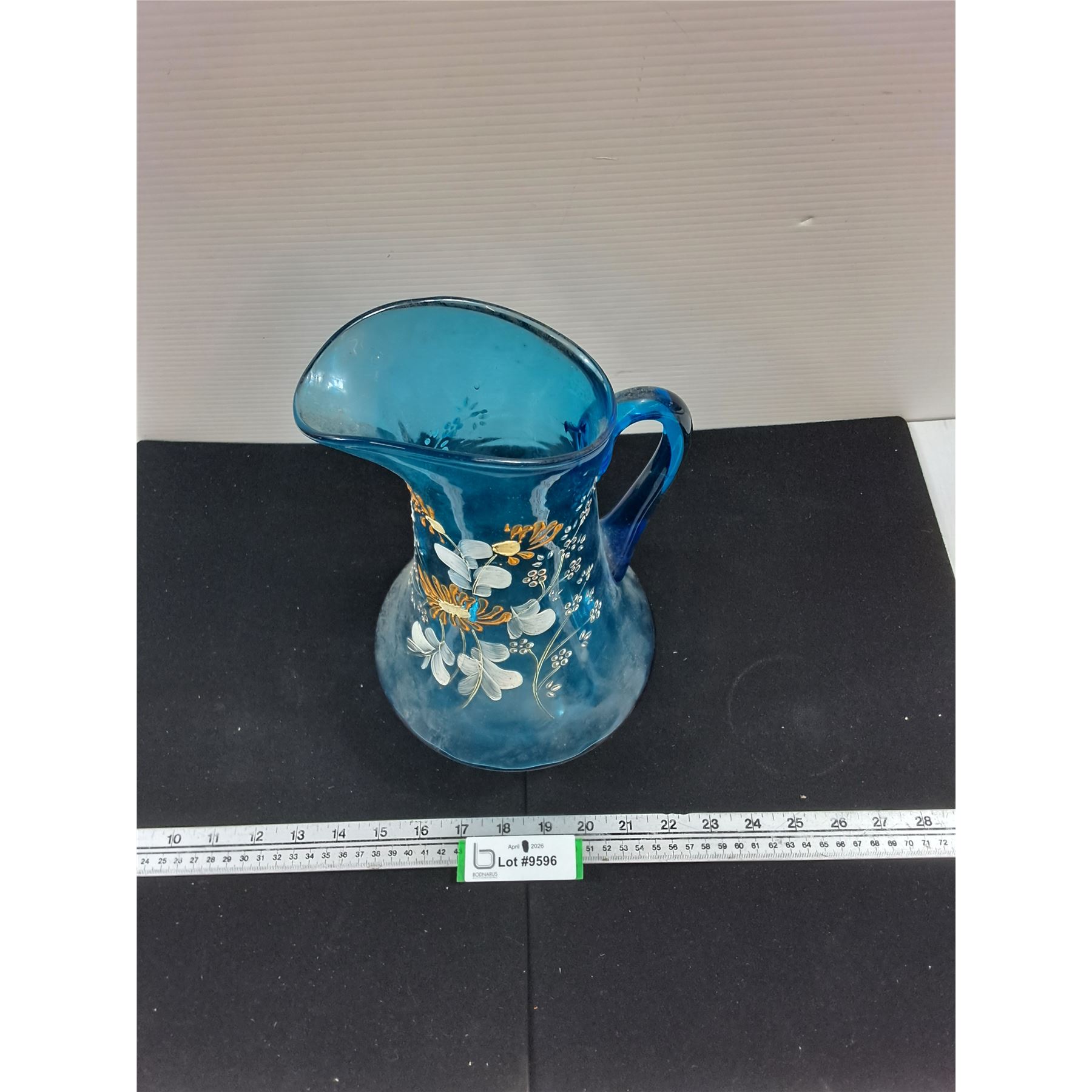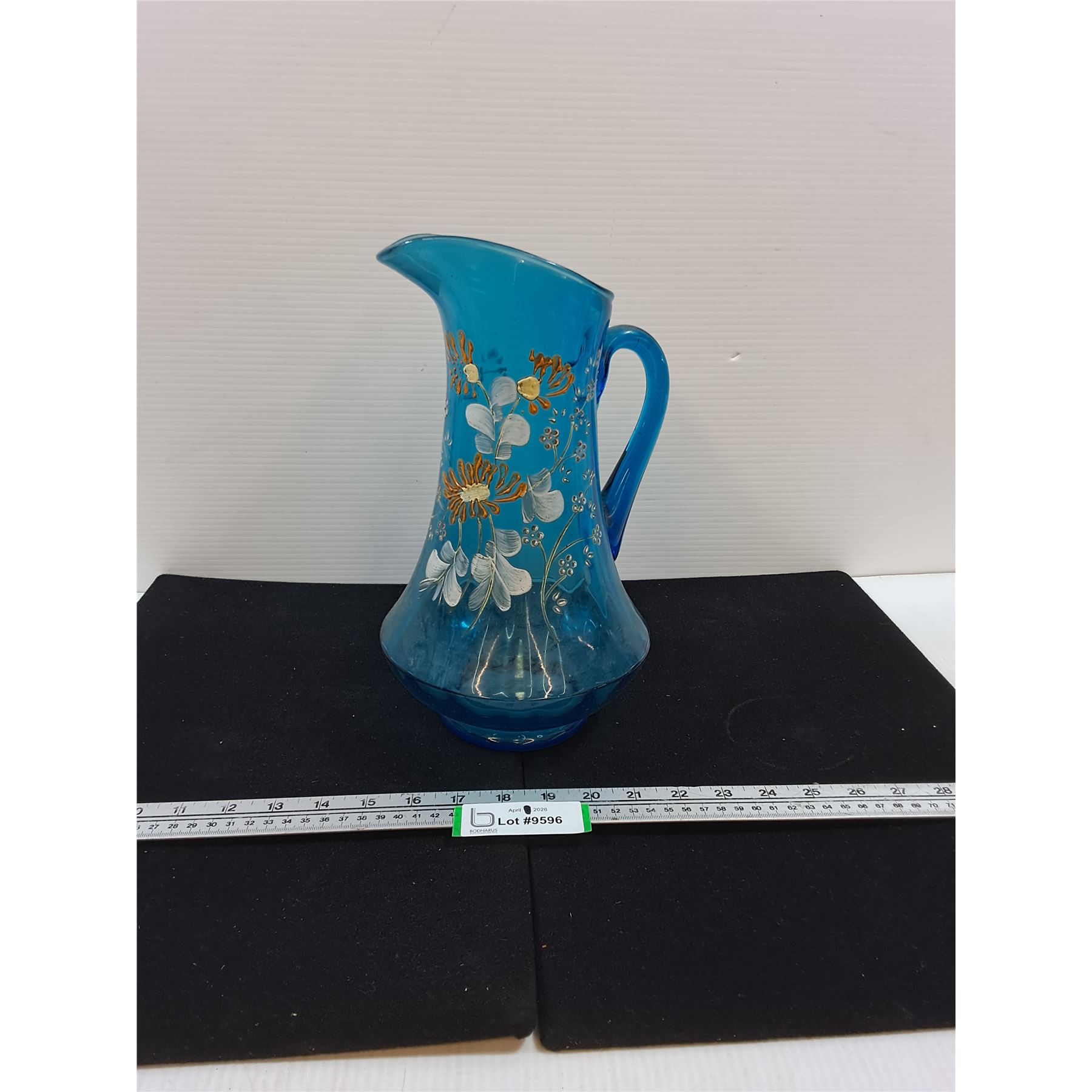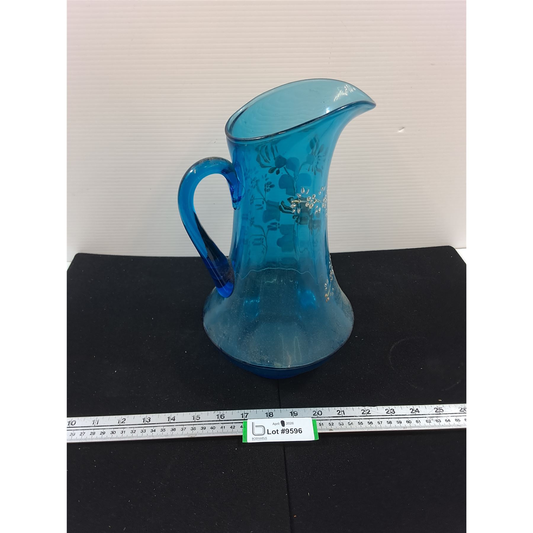 Lot 9596 Antique Fenton Blue Art Glass Pitcher 12" tall