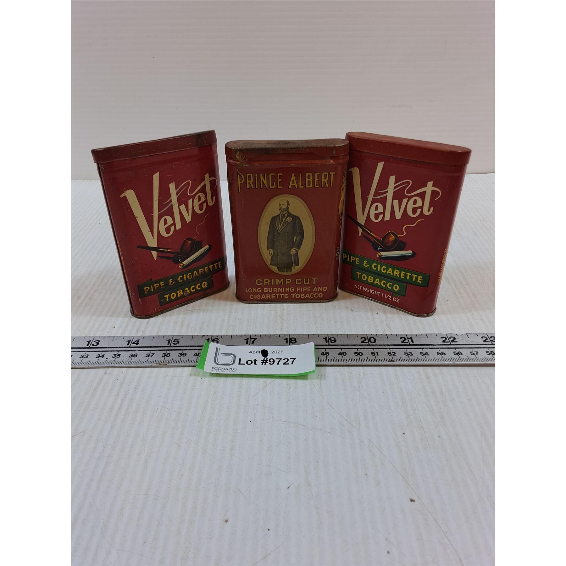 Lot 9727 (3) Cigarette Tins-Prince Albert, (2) Velvet