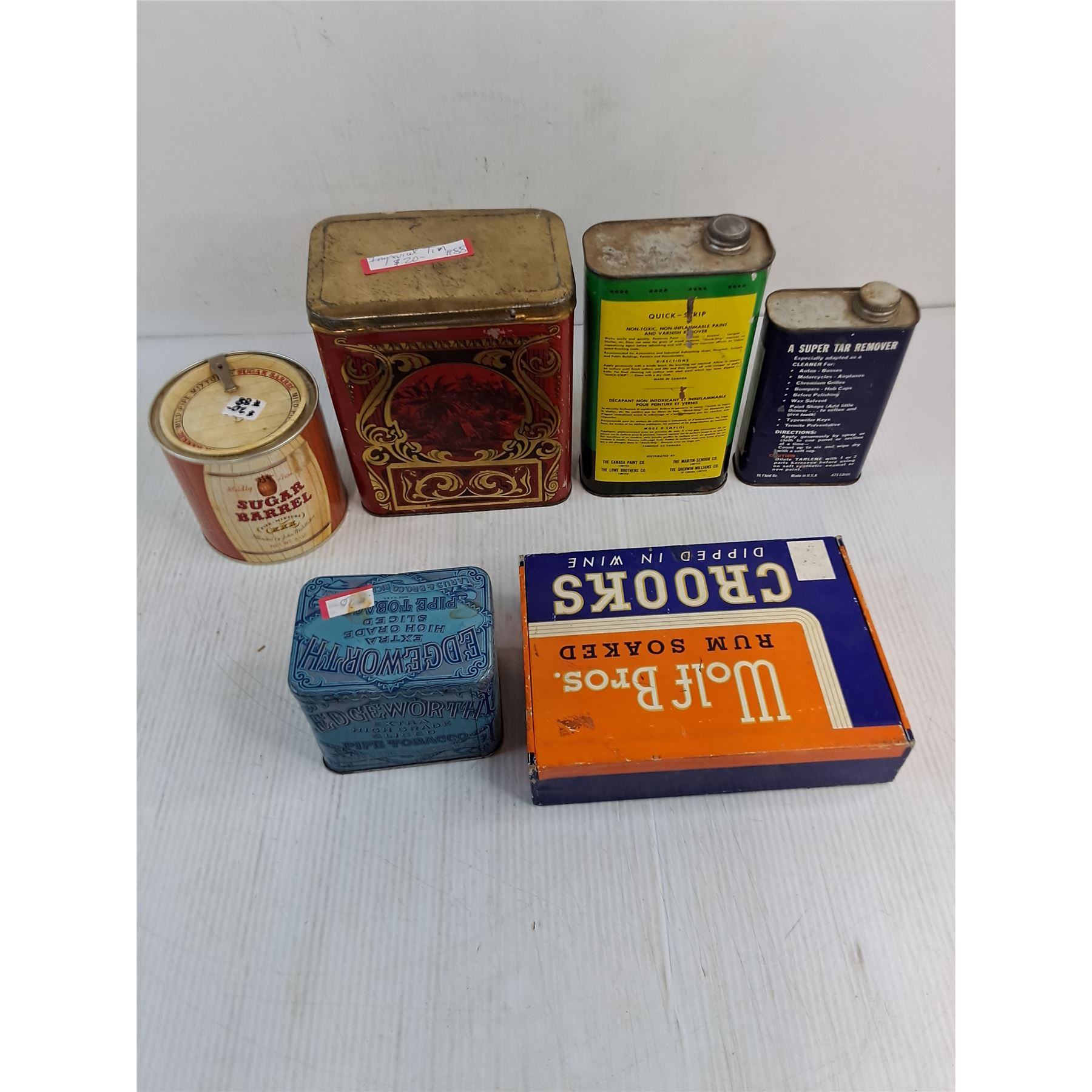 Lot 9739 (6) Assorted Vintage Tins & Cigar Box