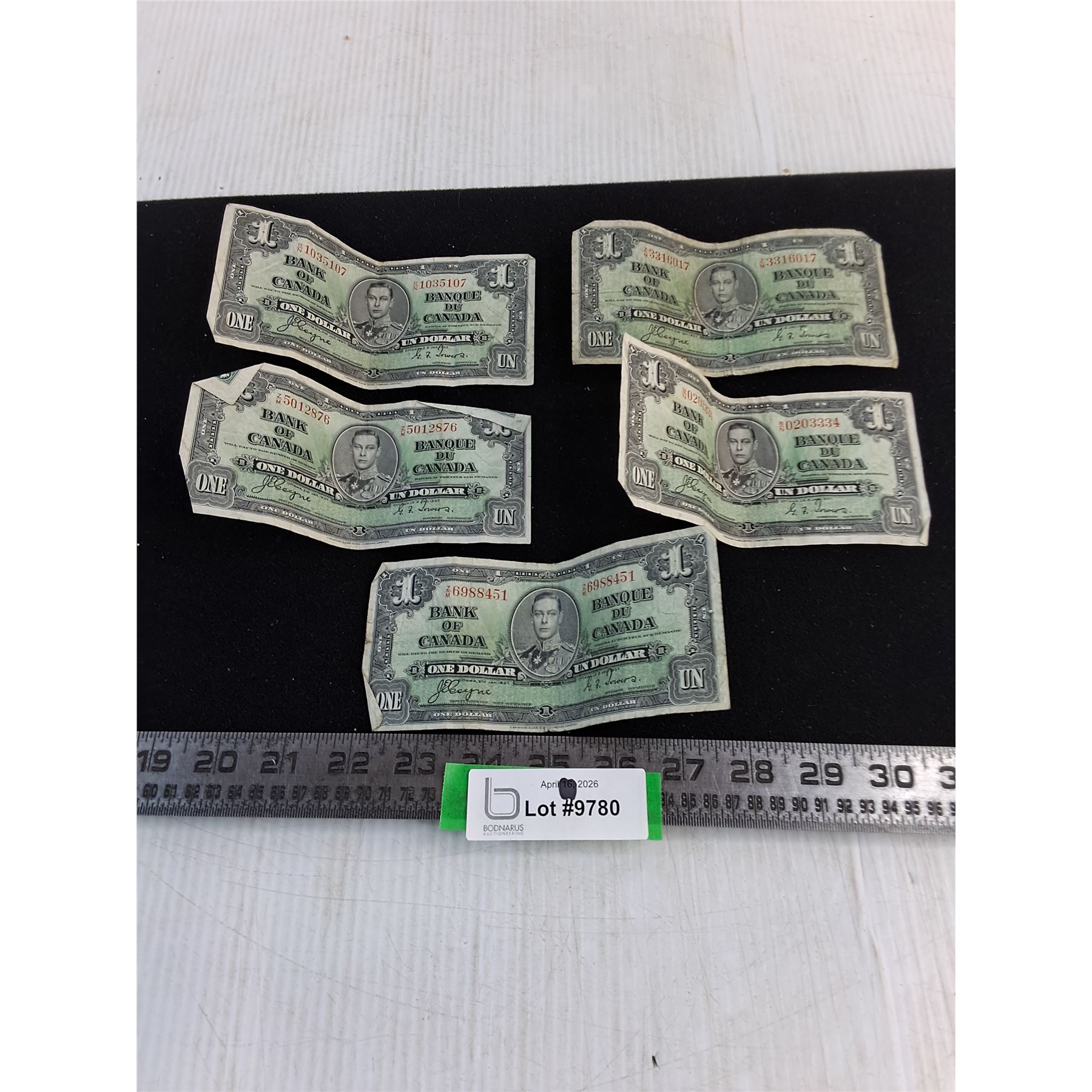 Lot 9780 (5) Canadian 1937 $1 Bank Notes