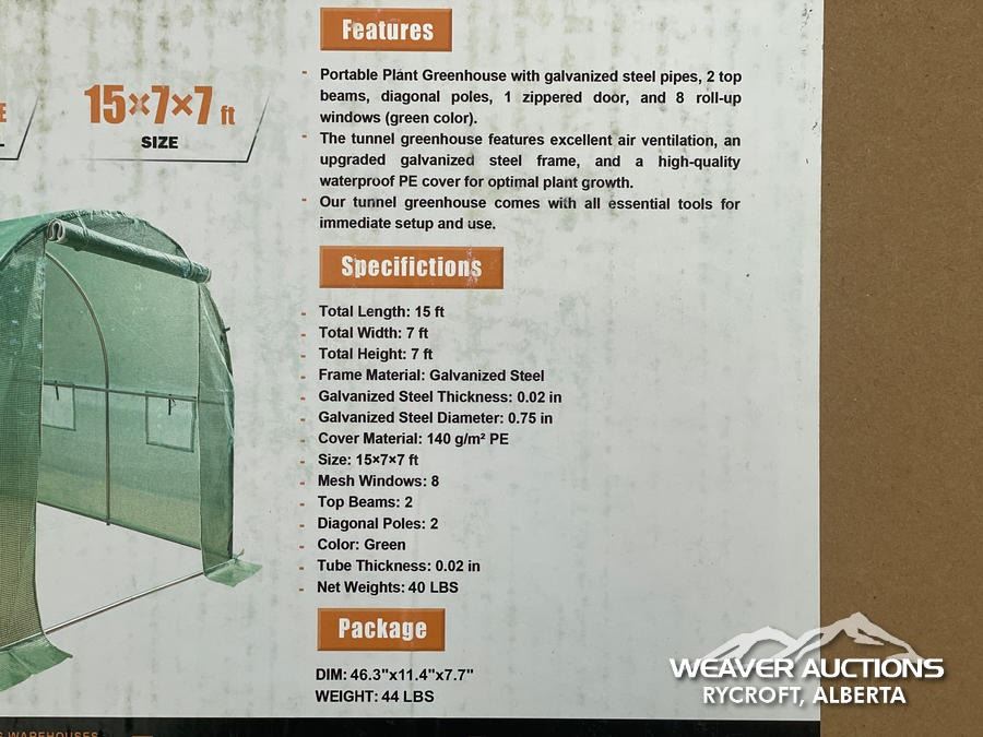 Specifications: *UNUSED, 7 X 7 X 15 FT.