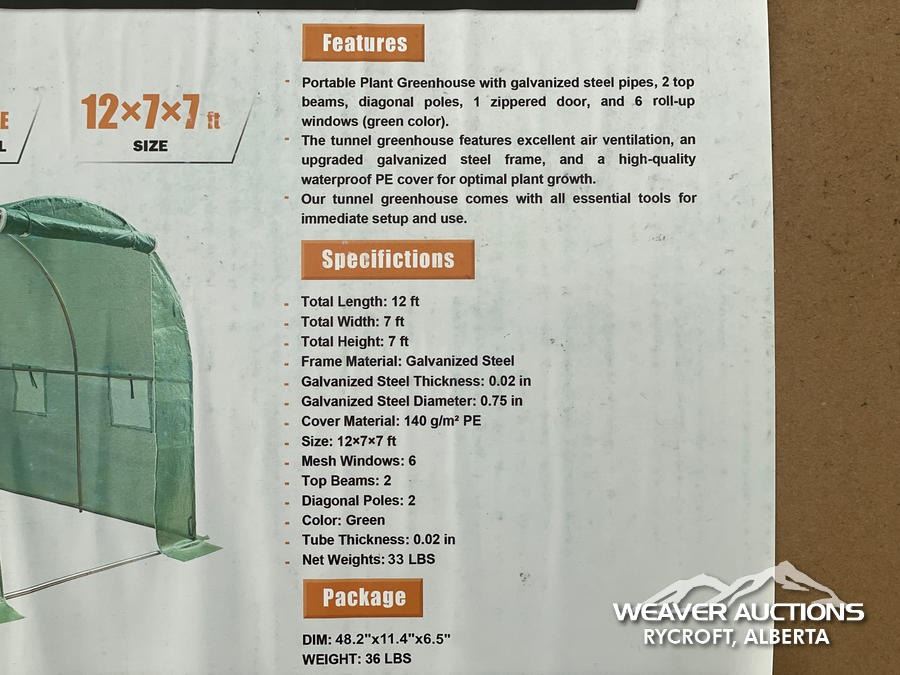 Specifications: *UNUSED, 7 X 7 X 12 FT.