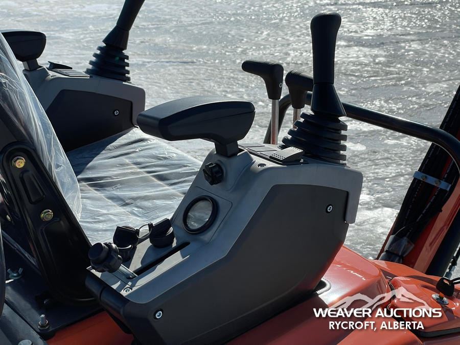 Specifications: *UNUSED, RUBBER TRACKS, DOZER BLADE, HYDRAULIC THUMB, SWING BOOM