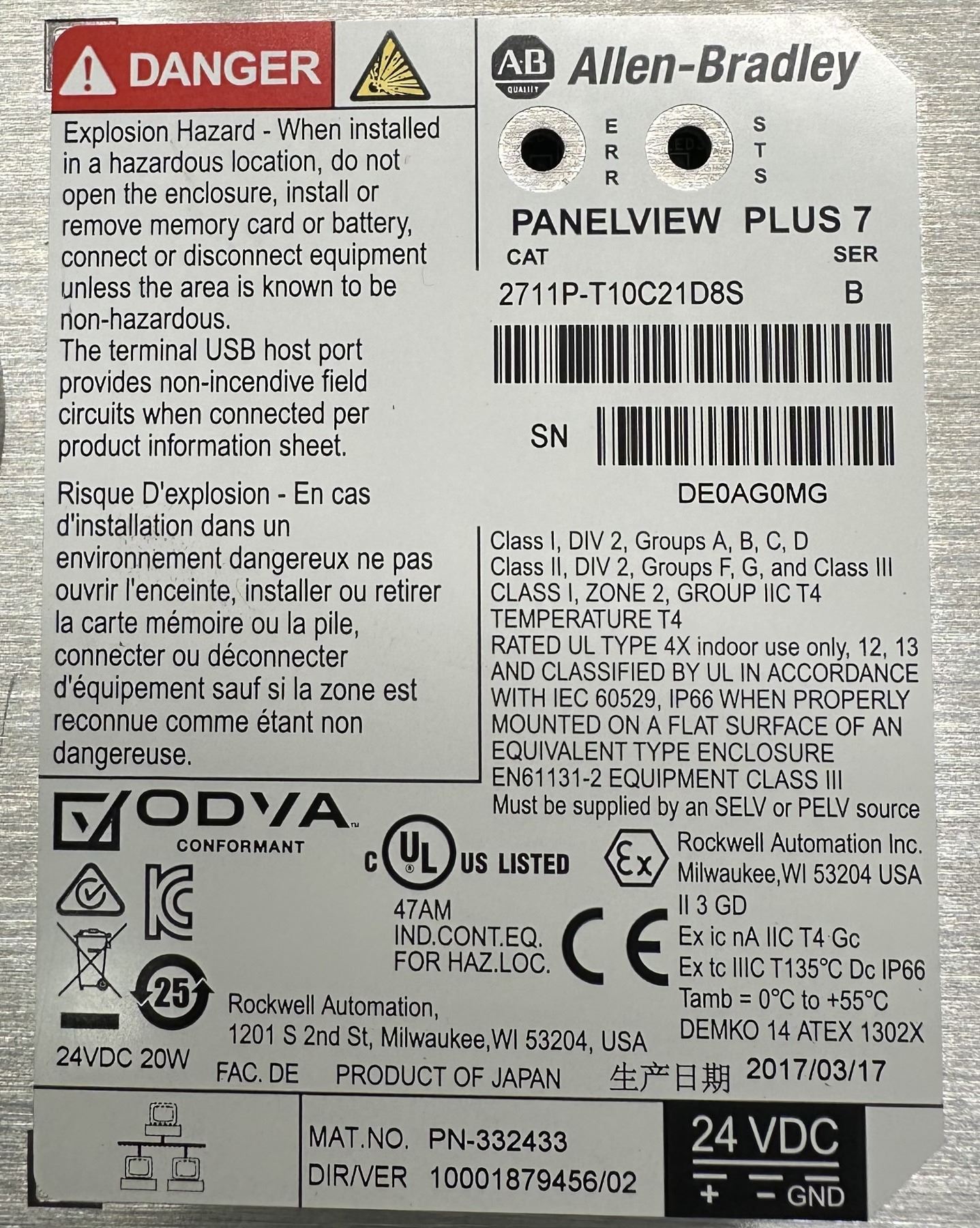Lot 417 Allen Bradley #2711P-T10C21D8S Panel View Plus 7