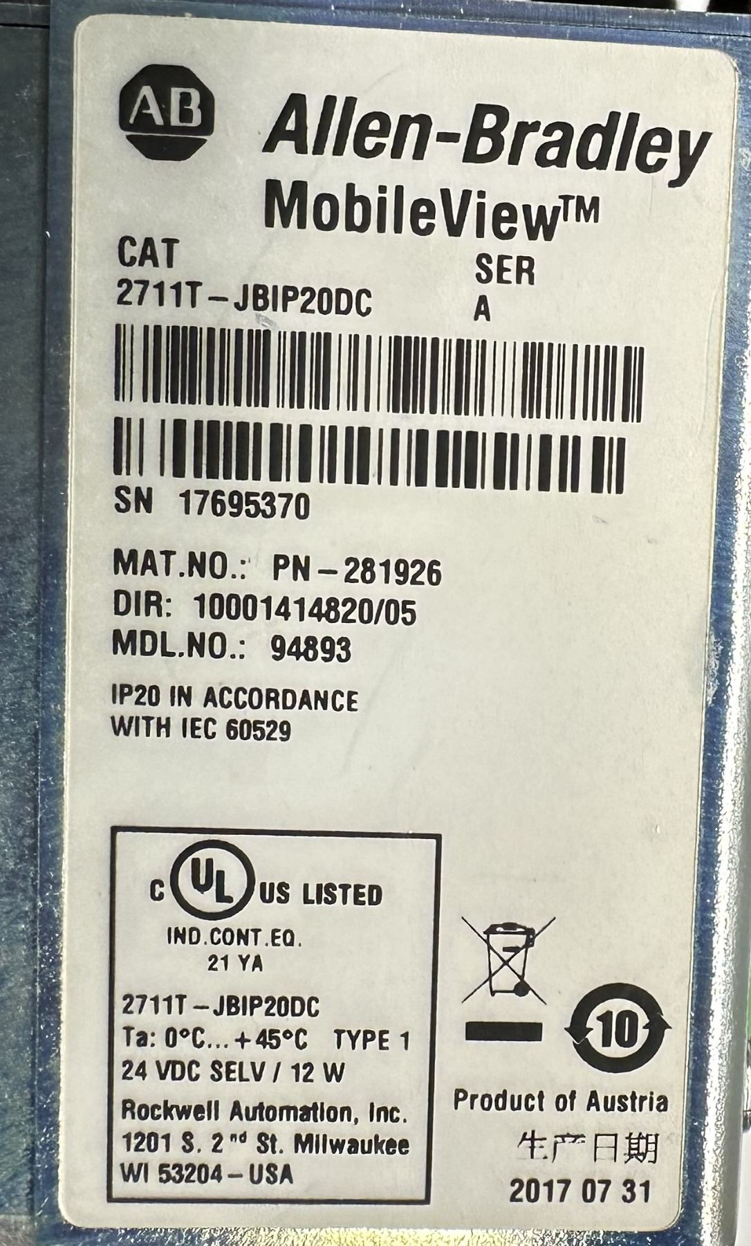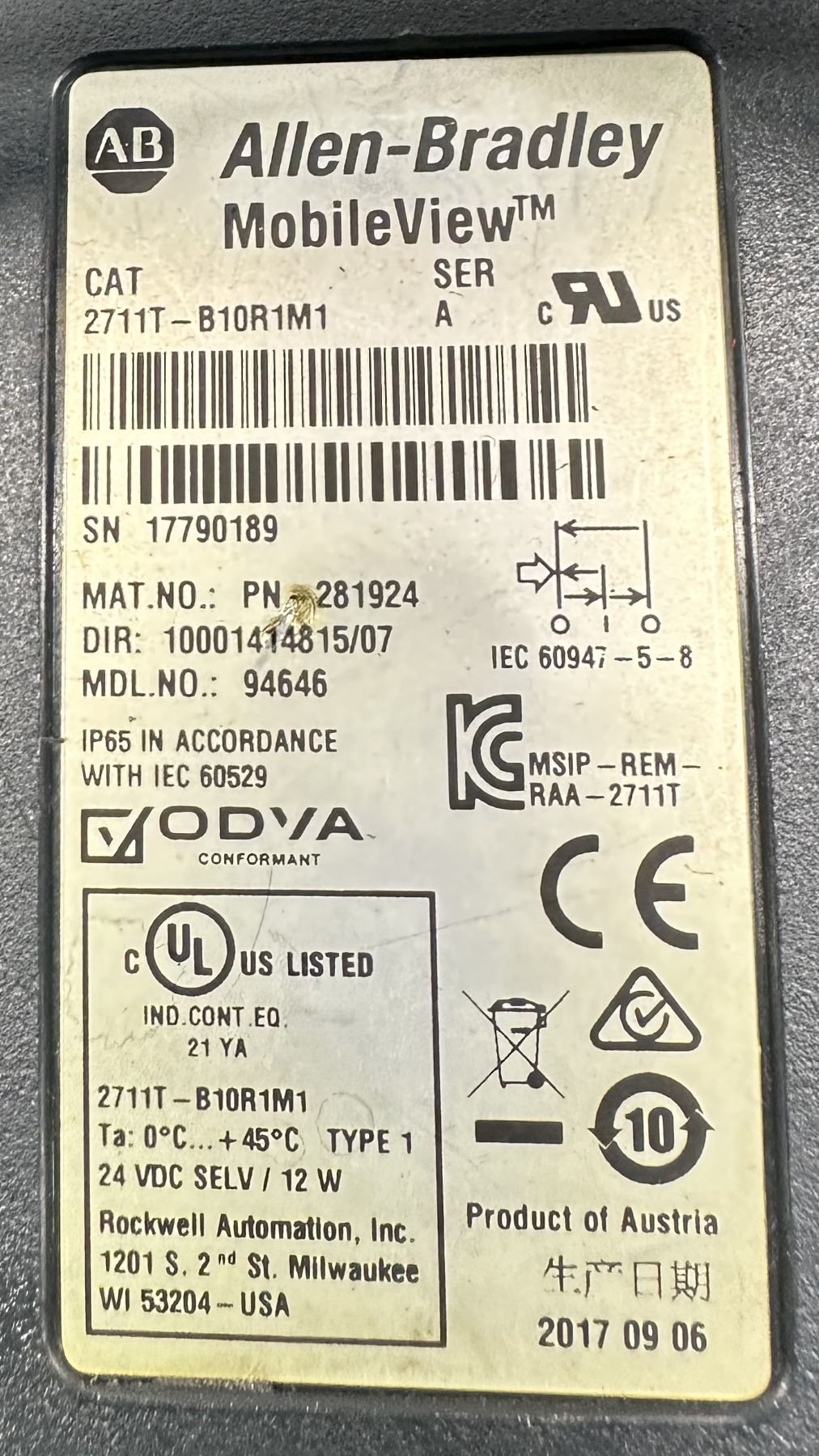 Allen Bradley #2711T-B10R1M1 Mobile View w/#2711T-10MCABLE &2711T-JBIP20DC