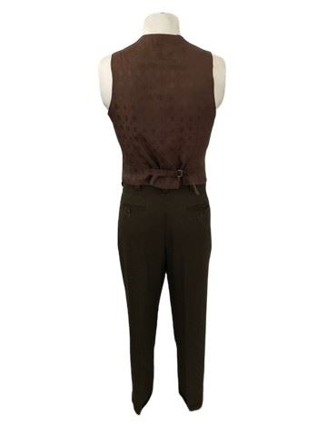 The French Dispatch (2021) – Arthur Howitzer Jr. (Bill Murray) 1920's Western Costume Co brown pinstriped vest with brown suit pants. Vest includes a Western Costume Co. barcode. Pants inside waist reads "Bill Murray #1", side of pants read: "SLP 41315". Used as back up costume pieces for the film, from the production. The vest is lighter in color than the pants which is not the actual shown colors in the film. In the film Bill Murray plays the editor of the French Dispatch newspaper's foreign bureau located in the fictional French city of Ennui-sur-Blase. The film follows three different stories published in the final issue of the newspaper, all overseen by this enigmatic editor.