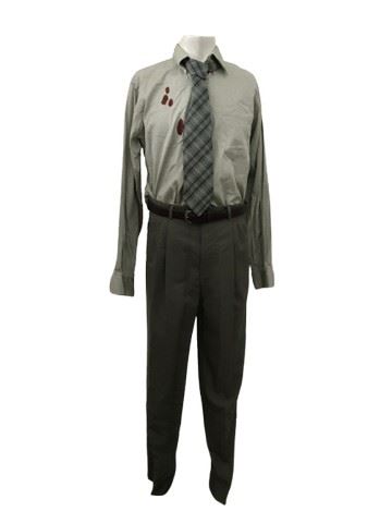 The Way of The Gun (2000)- Dr. Alan Painter (Dylan Kussman) screen worn for change #1, light green, Nordstrom dress shirt (size 15 1/2–35) with blood stains, green, blue, and black plaid tie with brown leather belt and olive green colored dress pants. Includes costume department wardrobe tag.