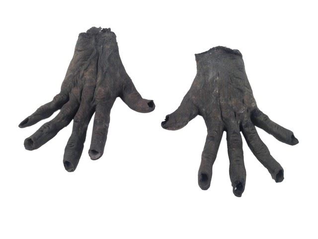 Screen used pair of lycan gloves made of latex (approx. 11"x10" each)