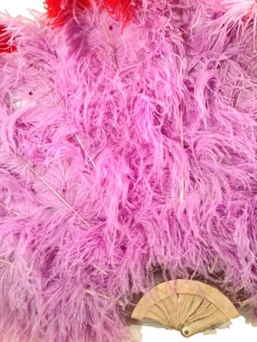 Dancer's purple and red feather with multi color sequins, oversized hand fan. (approx. 50" x 30")