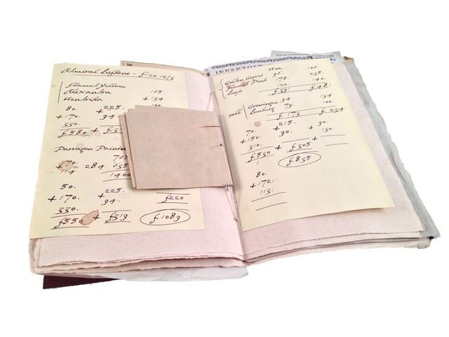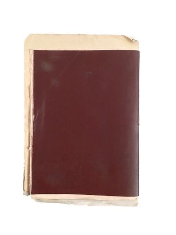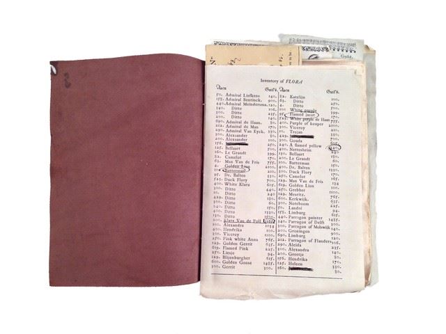 Jan Van Loos (Dane DeHaan) screen used, hero brown leather tulip notebook with several pages of tulip inventory, prices and aquisition records on parchment type paper, bound to the book with string. (9"x7").