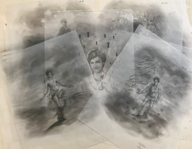 Lisa Williams: Life Among the Dead (2006) - poster concept Artwork. Own a tangible piece of the creative development for "Life Among the Dead" with this ten-page collection of poster concept artwork. Executed on transparent sketch paper and individually numbered at the top, this presentation allows you to follow the artist's hand as they explored different visual directions. An intimate look into the film's visual identity. (14"x11").
