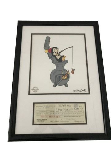 Lot 419 Walter Lantz “Hot Lunch“ serigraph cel, and employee check Framed -authentic