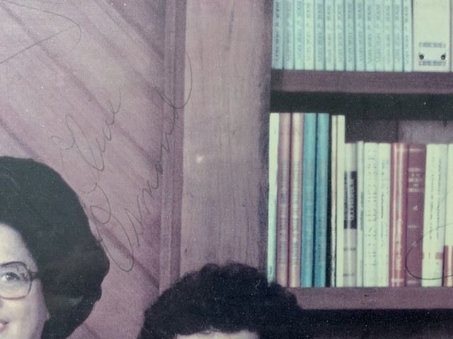 The Osmond Family portrait (from the Osmond newsletter subscription), framed and signed. This was once hung in the Debbie Reynolds Dance Studio. Signed by Marie, Donny, Jay, Jimmy, Merrill, Wayne, Alan, Virl, Tom and their parents: George and Olive. Signatures have faded over time. (23"x18")