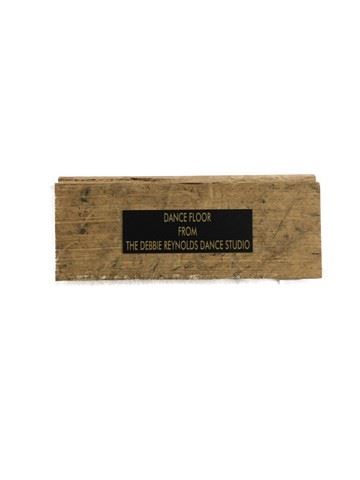 Singing in the Rain (Metro-Goldwyn-Mayer, 1952) Half Sheet. Starring: Gene Kelly, Donald O' Connor, and Debbie Reynolds. Autographed by Debbie Reynolds and Donald O' Connor. Near Mint. (29.75" X 32.75"). Cotton canvas linen-backing. Paired with a piece of the original, wooden dance floor from Debbie Reynolds Dance Studio, with a custom engraved "Debbie Reynolds Dance Studio" plate (3.5"x 6.25"). This amazing memorabilia comes direct from the Debbie Reynold's archive collection.
