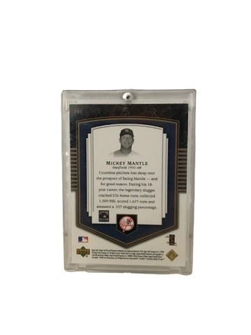 Mickey Mantle Upper Deck Classic Portraits Baseball Royalty card, displayed in this plastic and sealed by a screw. Numbered 0954/1200 in gold foil. With Upper Deck's hologram on the back. (2003)