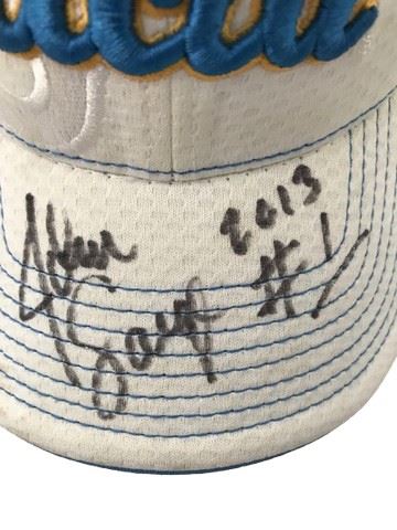 John Savage autographed UCLA Bruins white and blue embroidered Baseball cap. Signed: “John Savage 2013 #1”