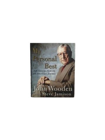 "My Personal Best: Life Lessons from an All American Journey" by John Wooden with Steve Jamison hardcover first edition library found gold foil lettering on spine and high-quality dust jacket title page personally signed to Barry Levy- thank you for your kind words about our book my personal best coach woman is one of a kind and I sincerely hope the book captured his story here yours truly Steve Jamison. Followed by a photograph of John Wooden and autographed by John Wooden in gold marker.
