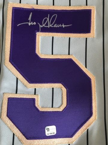 Jersey features embroidered team logo player name and player number and the signature by Troy Glaus on the number five on the rear. Contains a certificate of authenticity numbered GV106106 by GA Global Authentics. Includes Letter of Authenticity.