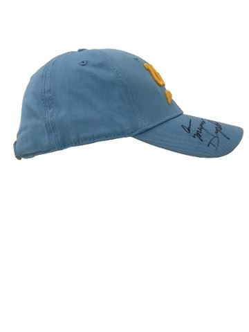 Signed UCLA female coaches/athletes light blue New Era UCLA embroidered baseball cap. Autographed by Valorie Kondos Field, Annie Myers Drysdale, Sue Enquist on the brim of cap.