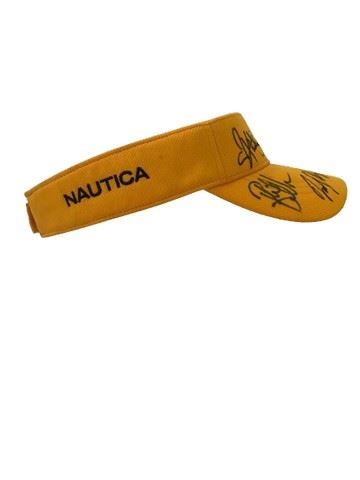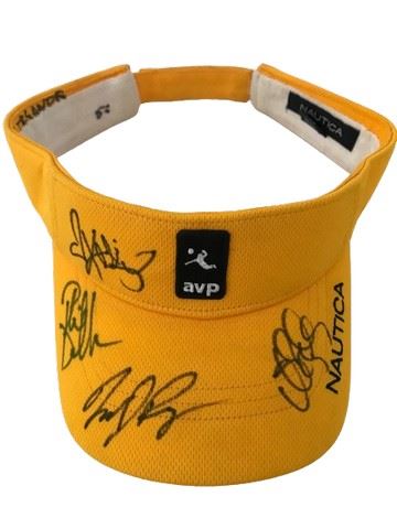 Association of Volleyball Professionals signed with 4 signatures on a yellow visor.