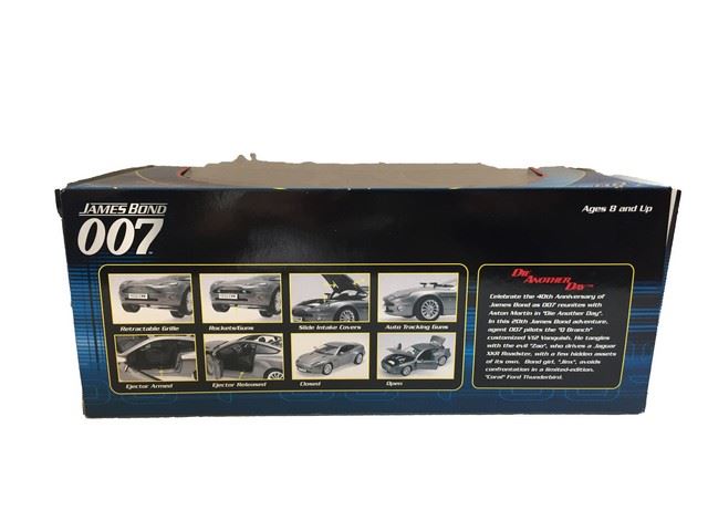 James Bond 007 branded "Die Another Day" Aston Martin V12 Vanquish, 1:18 scale. 2002 The Beanstalk Group, LLC and Danjaq LLC. New in box. Great condition. (13"x7"x5")
