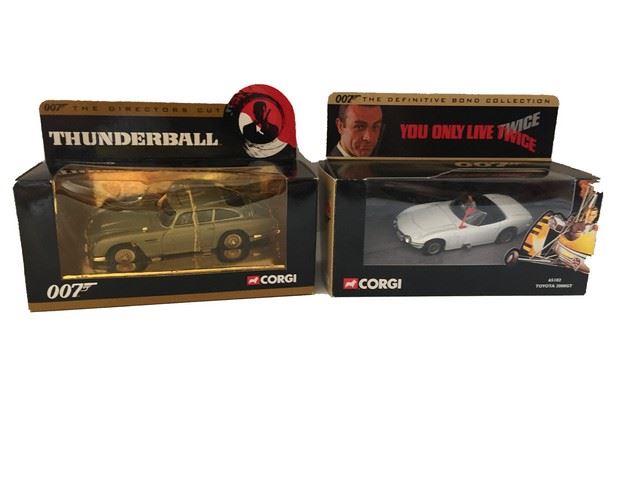 New in box: Toyota 2000GT Corgi Classics Limited - The Definitive Bond Collection, and a Corgi Classics Limited Edition, Aston Martin DB5- from the Directors Cut collection. Both collectible cars come from the 007 franchise. The Aston Martin was packaged with a rubber band that is now fragmented but besides that, the item has been boxed and untouched in the packaged (7"x3"x3").