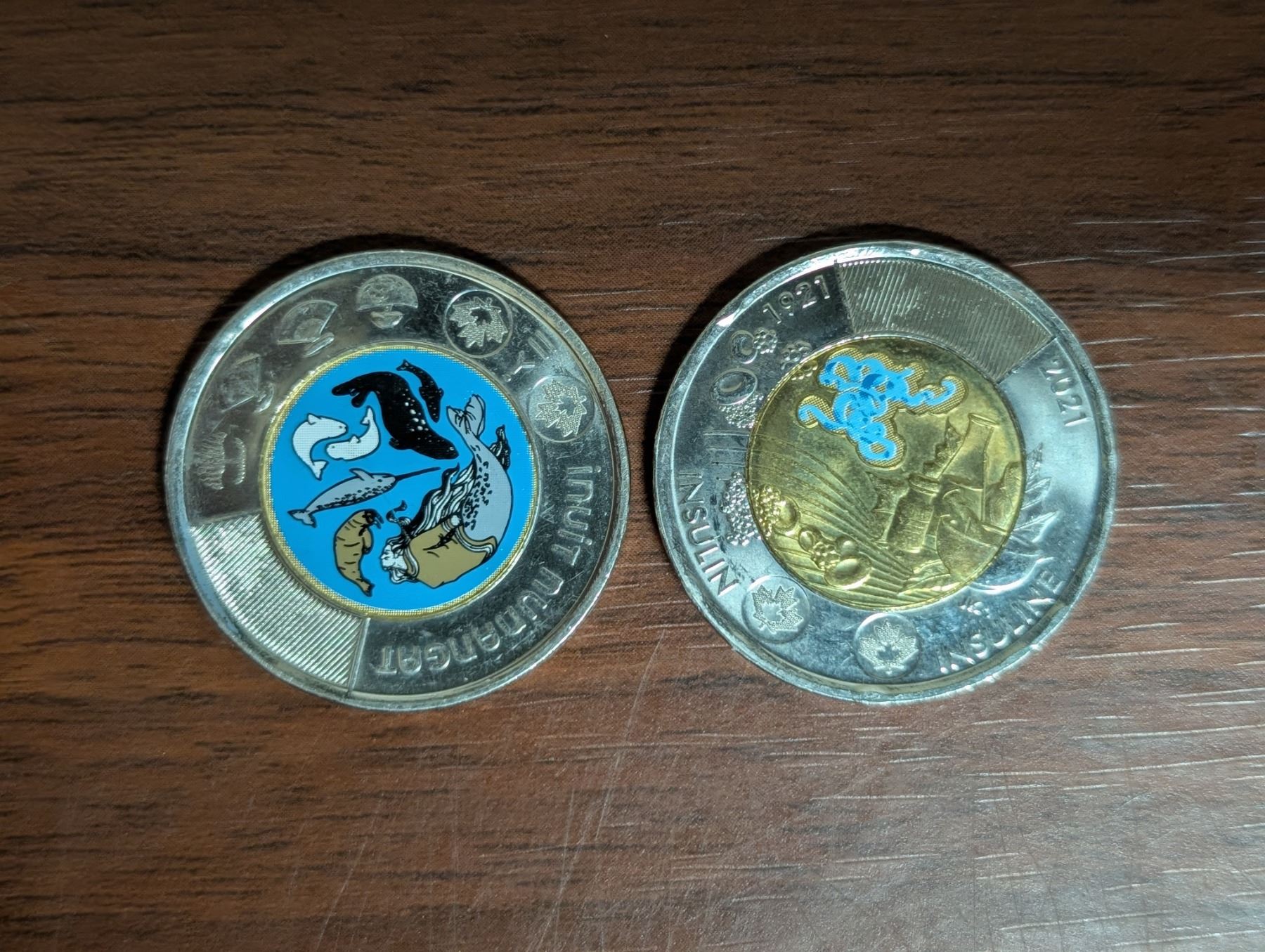 (2) Canadian Toonies (Inuit 2024) and (2021 Insulin)