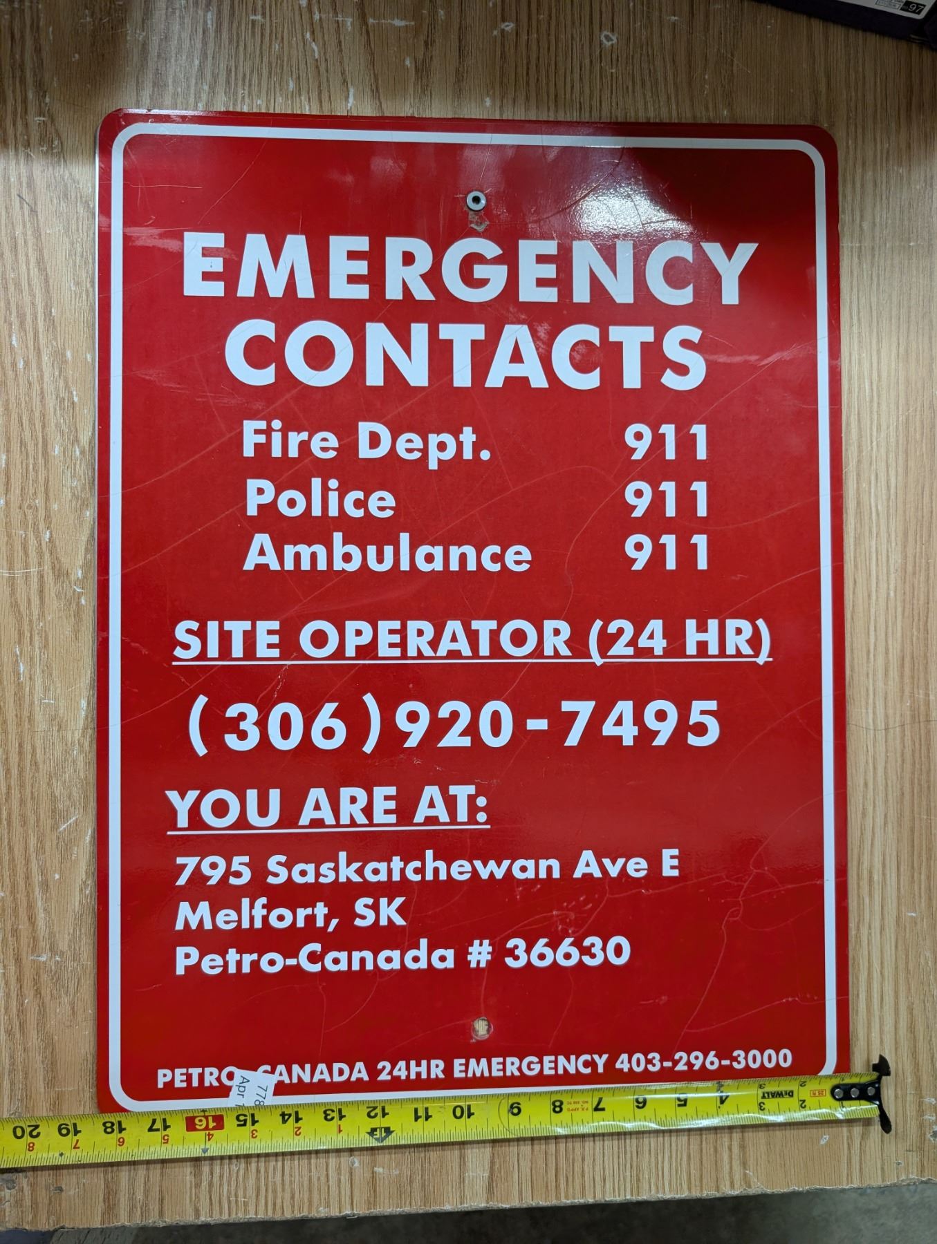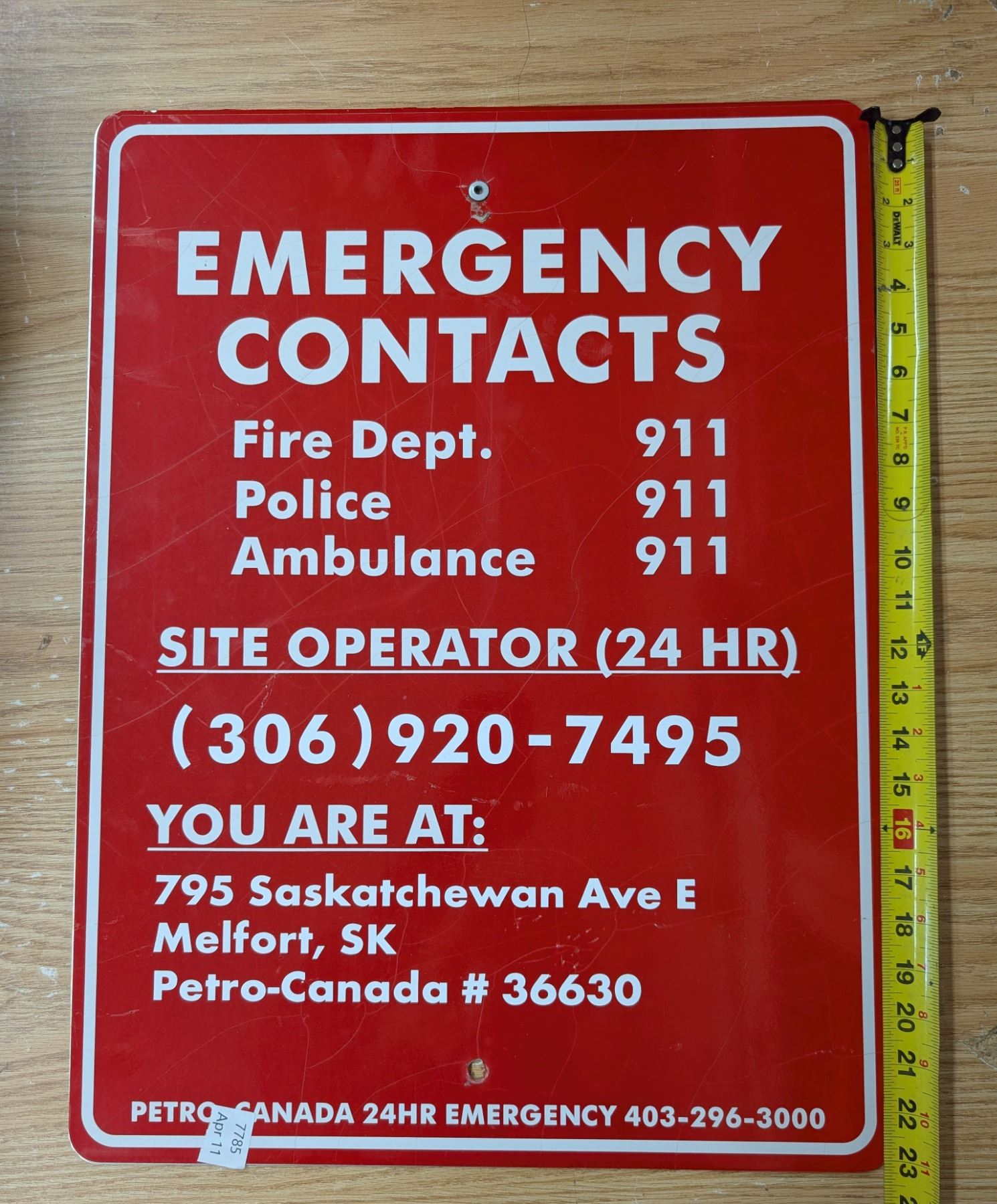 Lot 1018 Emergency Contacts Petro Canada Sign 23"x18"