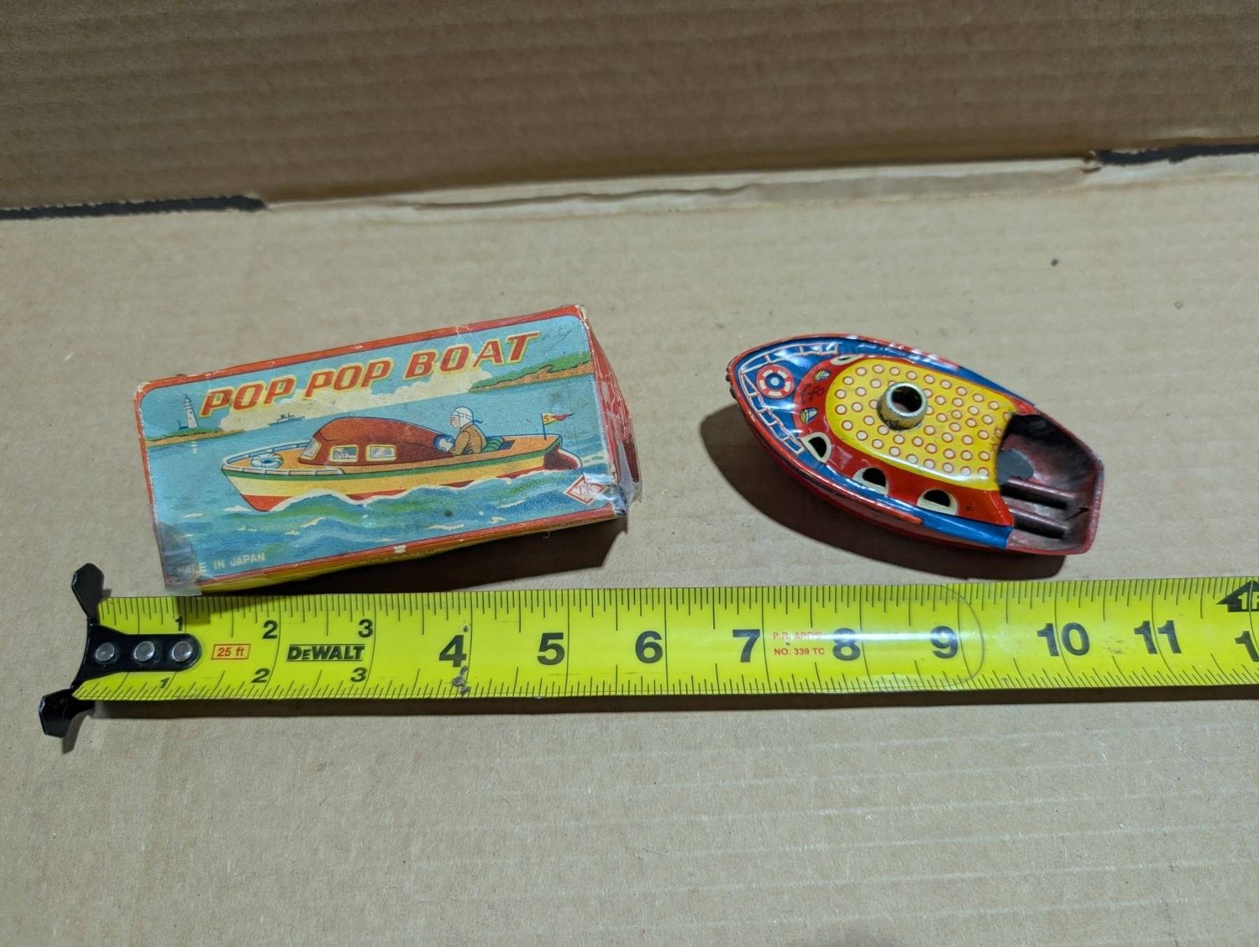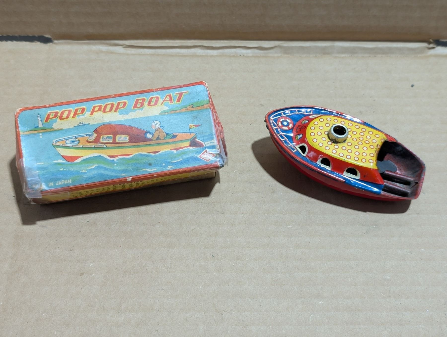 Vintage Pop Pop Boat Wind Up Toy w/ Original Box