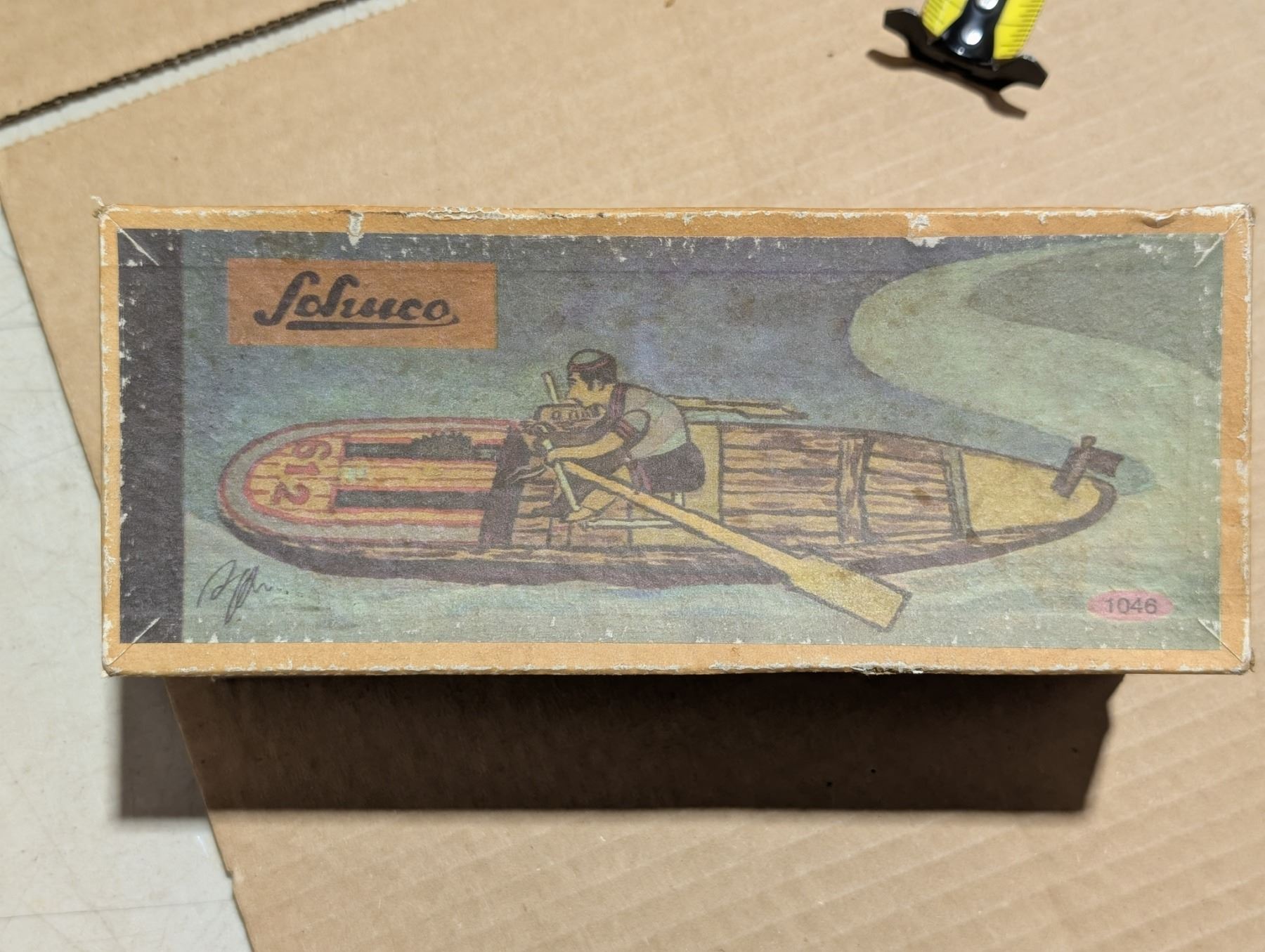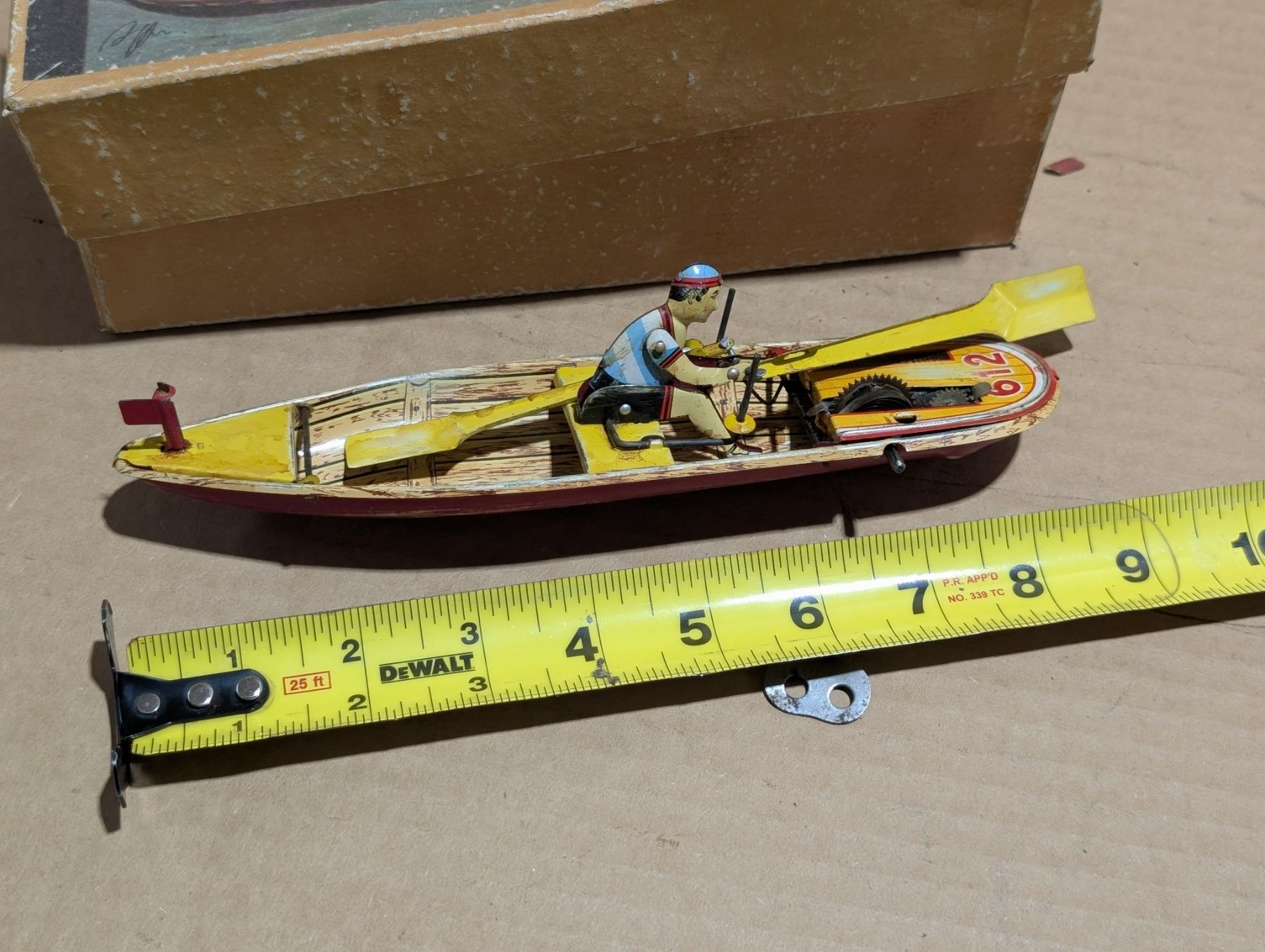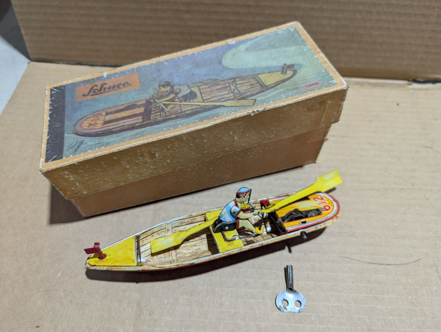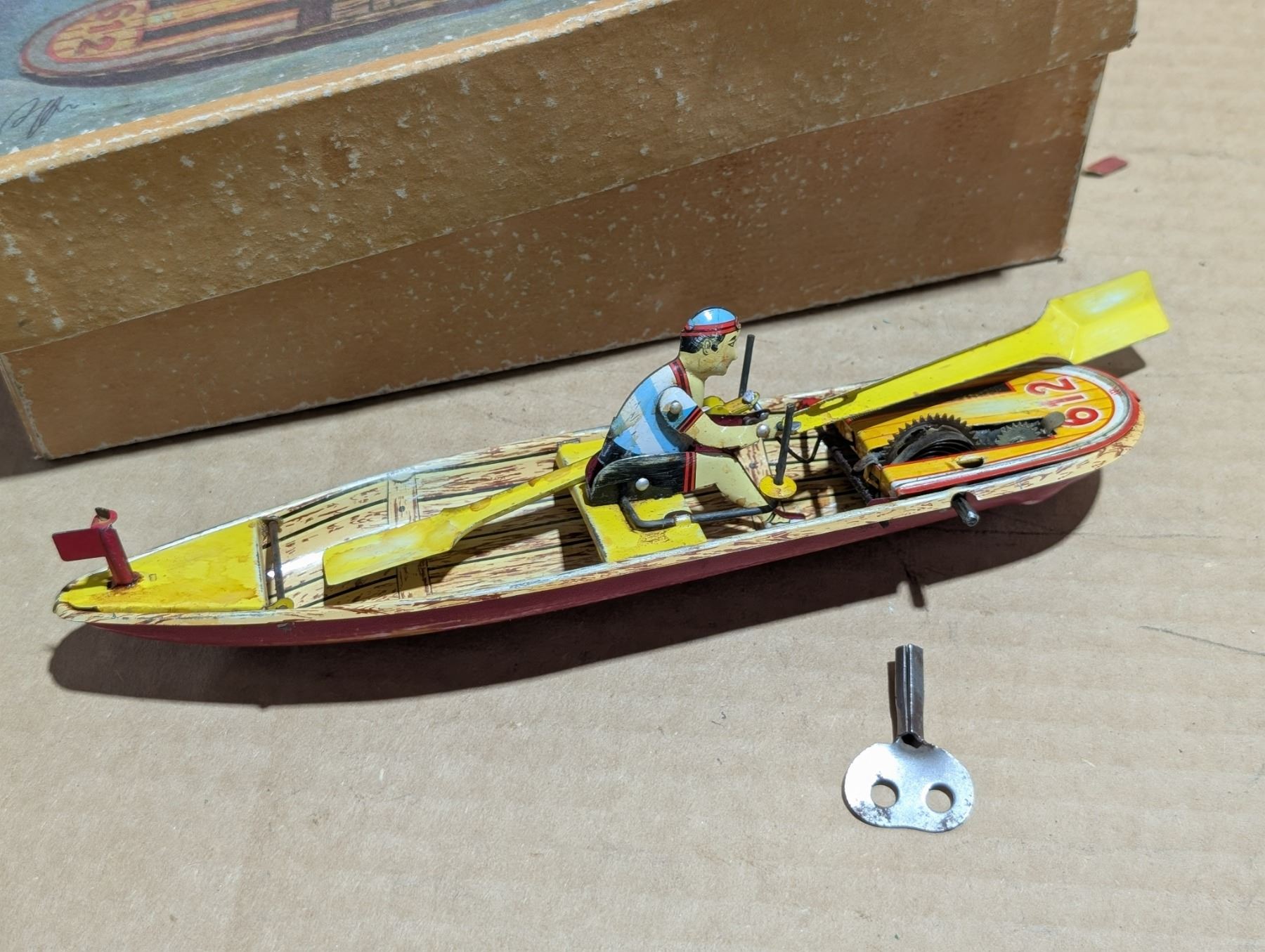 Vintage Wind Up Rowing Boat Toy w/ Original Box (Works)