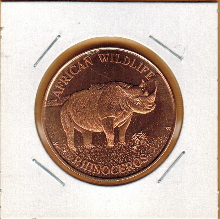 1 OUNCE COPPER - .999 FINE - AFRICAN WILDLIFE - RHINOCEROS