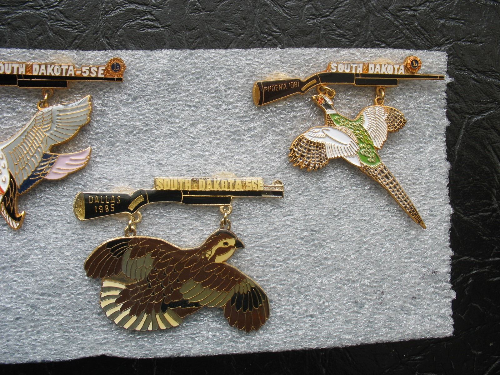 LOT OF 5 LIONS CLUB PINS - SOUTH DAKOTA - VARIOUS CONVENTIONS - GUN & GAME HUNTING