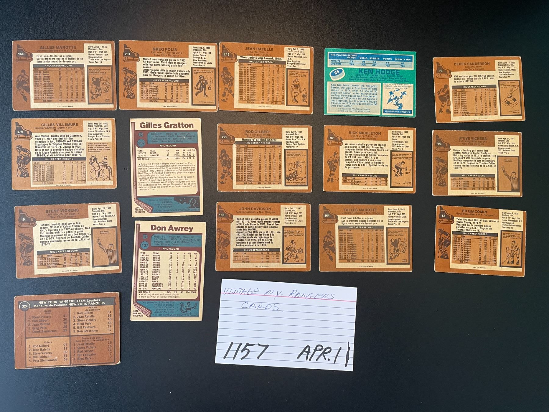 Lot 1157 Vintage NY Rangers hockey cards