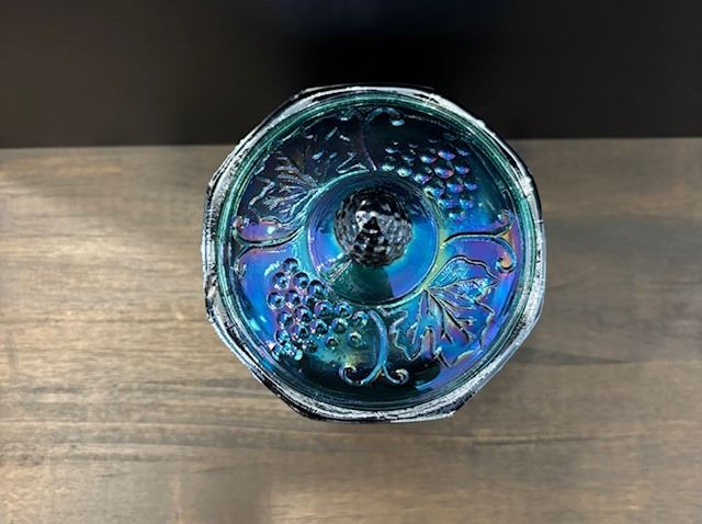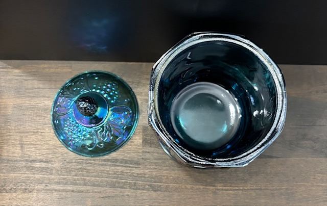 Blue Carnival Glass “Harvest Grape” Canister with Lid